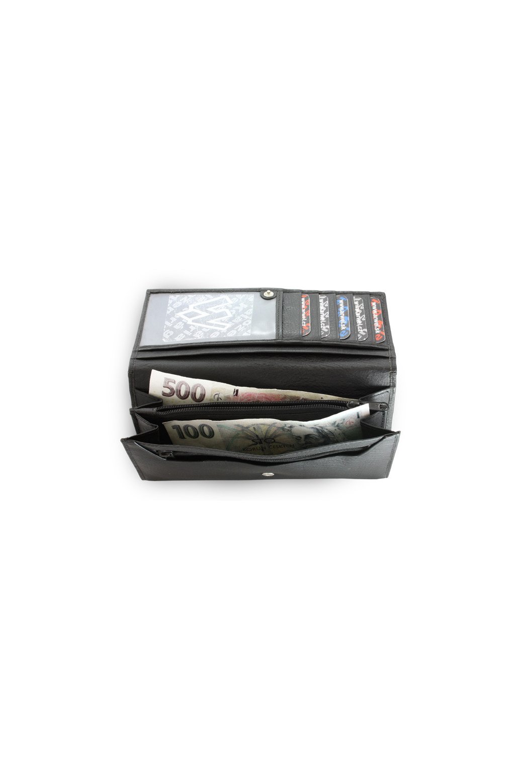 Černá dámská psaníčková kožená peněženka s klopnou 511-2018-60