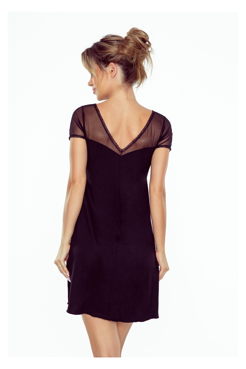 Elegantní noční košilka se síťovaným výstřihem a krajkovými vsadkami přináší dokonalou rovnováhu mezi pohodlím a smyslným vzhledem. Lehký materiál příjemně splývá po těle a zajišťuje klidný spánek. Stylové detaily dodávají modelu rafinovaný nádech pro večery, kdy se chcete cítit krásně.