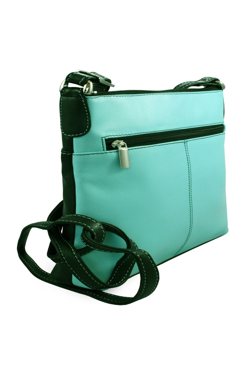Černo-světle modrá kožená zipová kabelka 212-3014-60/91