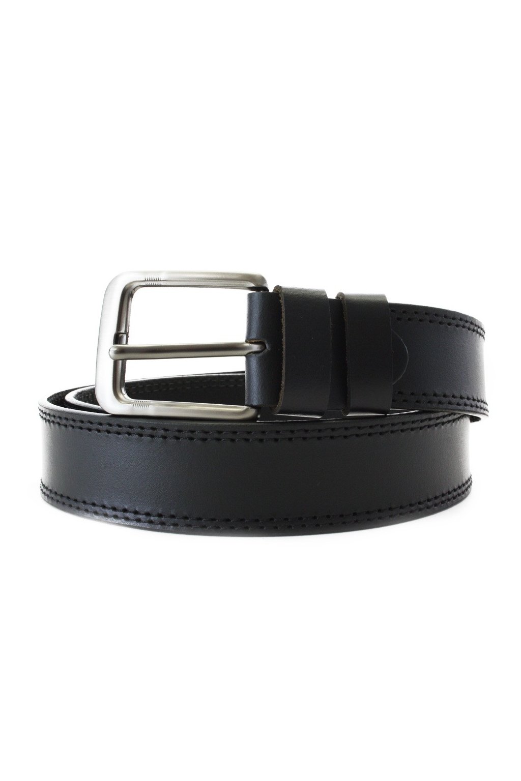 Černý kožený pánský opasek s dvojitým šitím 913-5002-2-60/60-9007-40