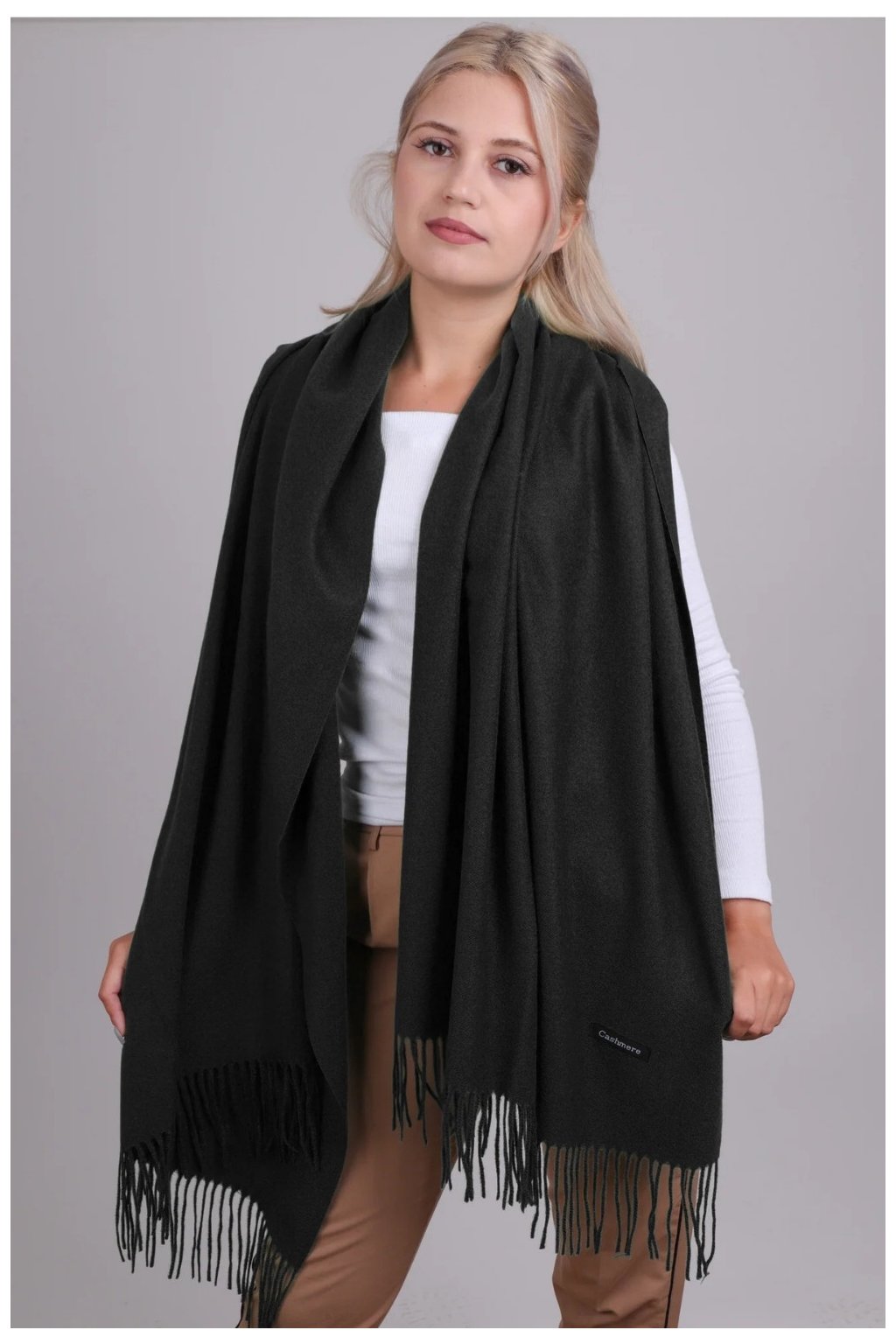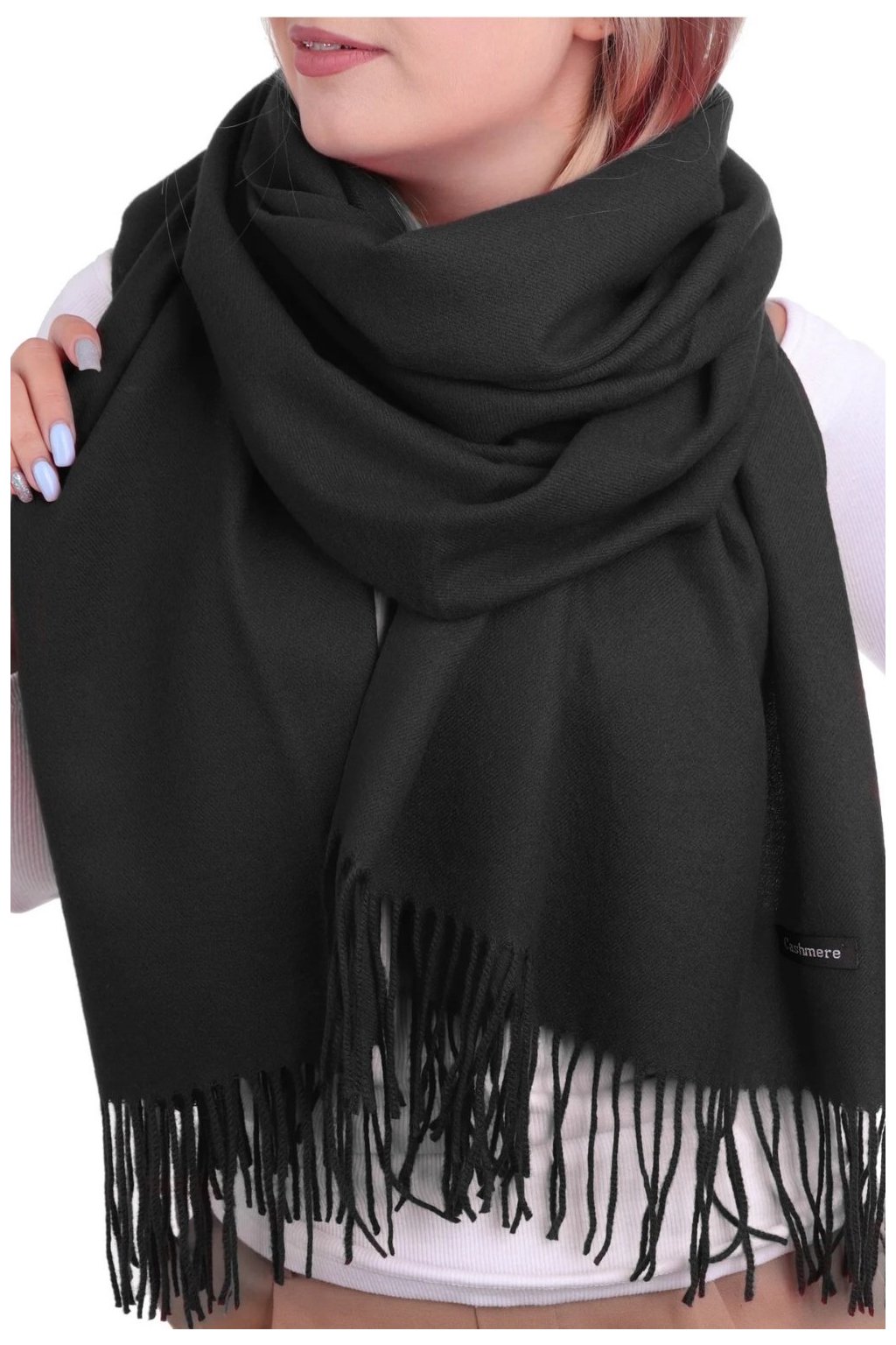 Černý šál s třásněmi