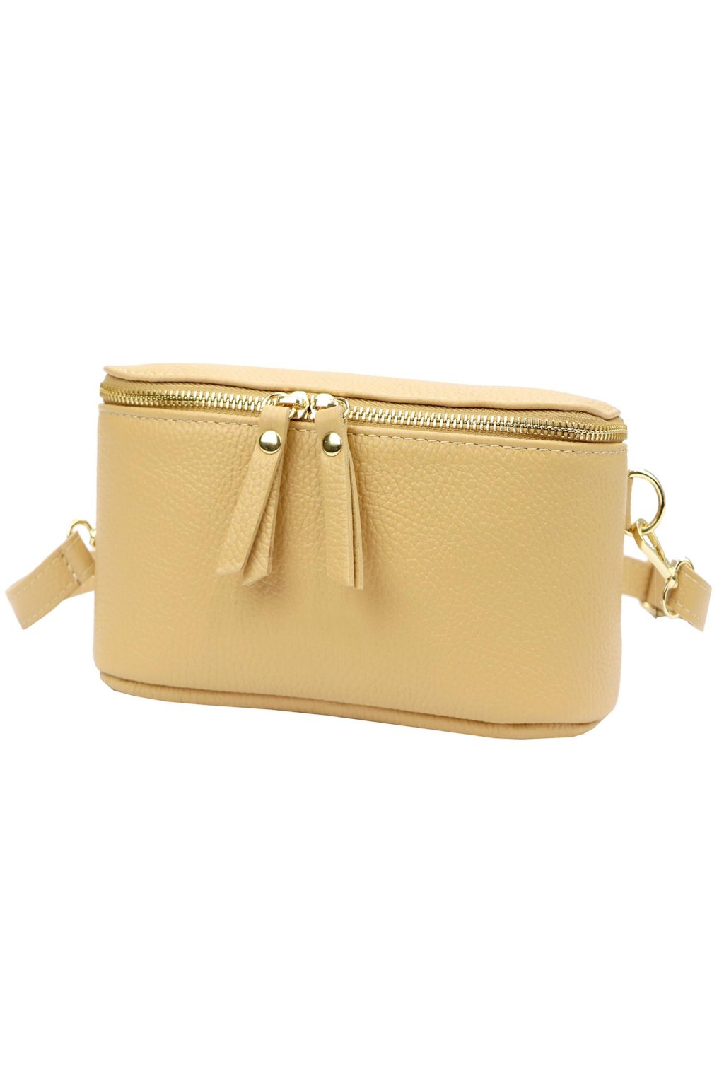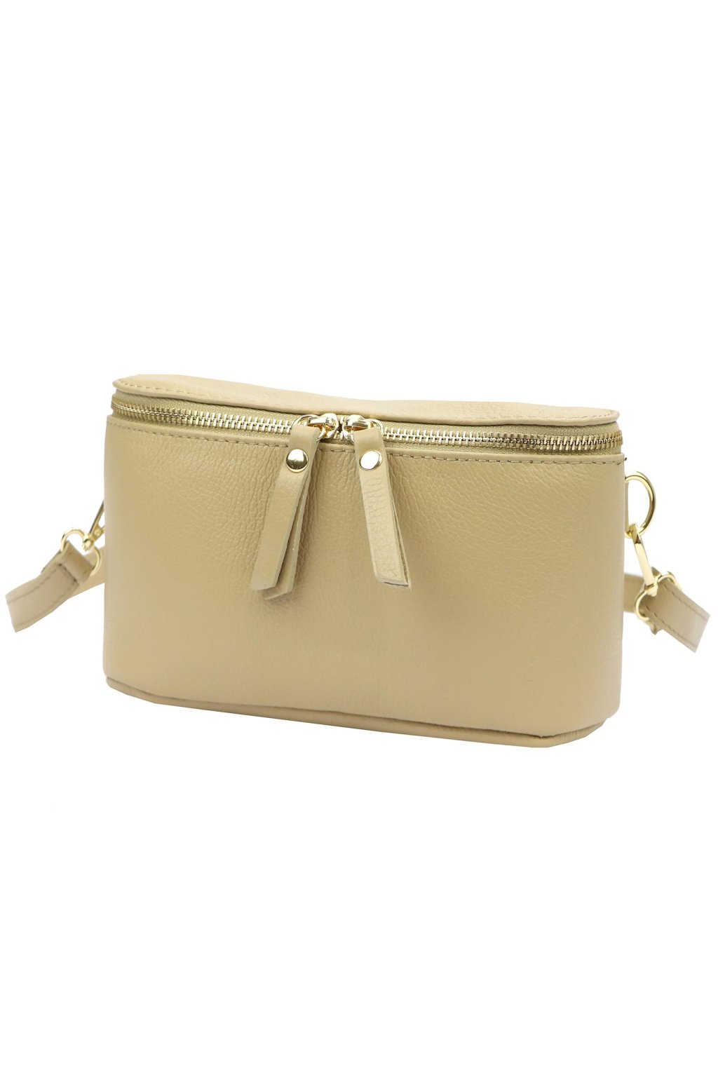 Elegantní dámská kabelka v kompaktním provedení zaujme jednoduchým a čistým designem. Jemně strukturovaný povrch imitující přírodní kůži působí nadčasově a stylově. Zlaté kovové detaily, včetně dvojitého zipu a karabinek, podtrhují luxusní vzhled kabelky. Díky decentnímu vzhledu se snadno kombinuje s různými outfity – od ležérního po elegantní.