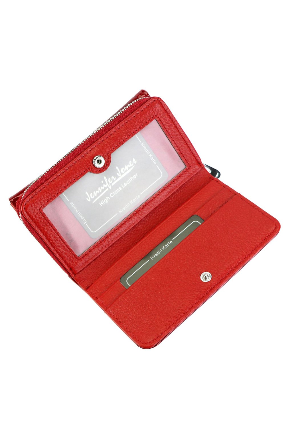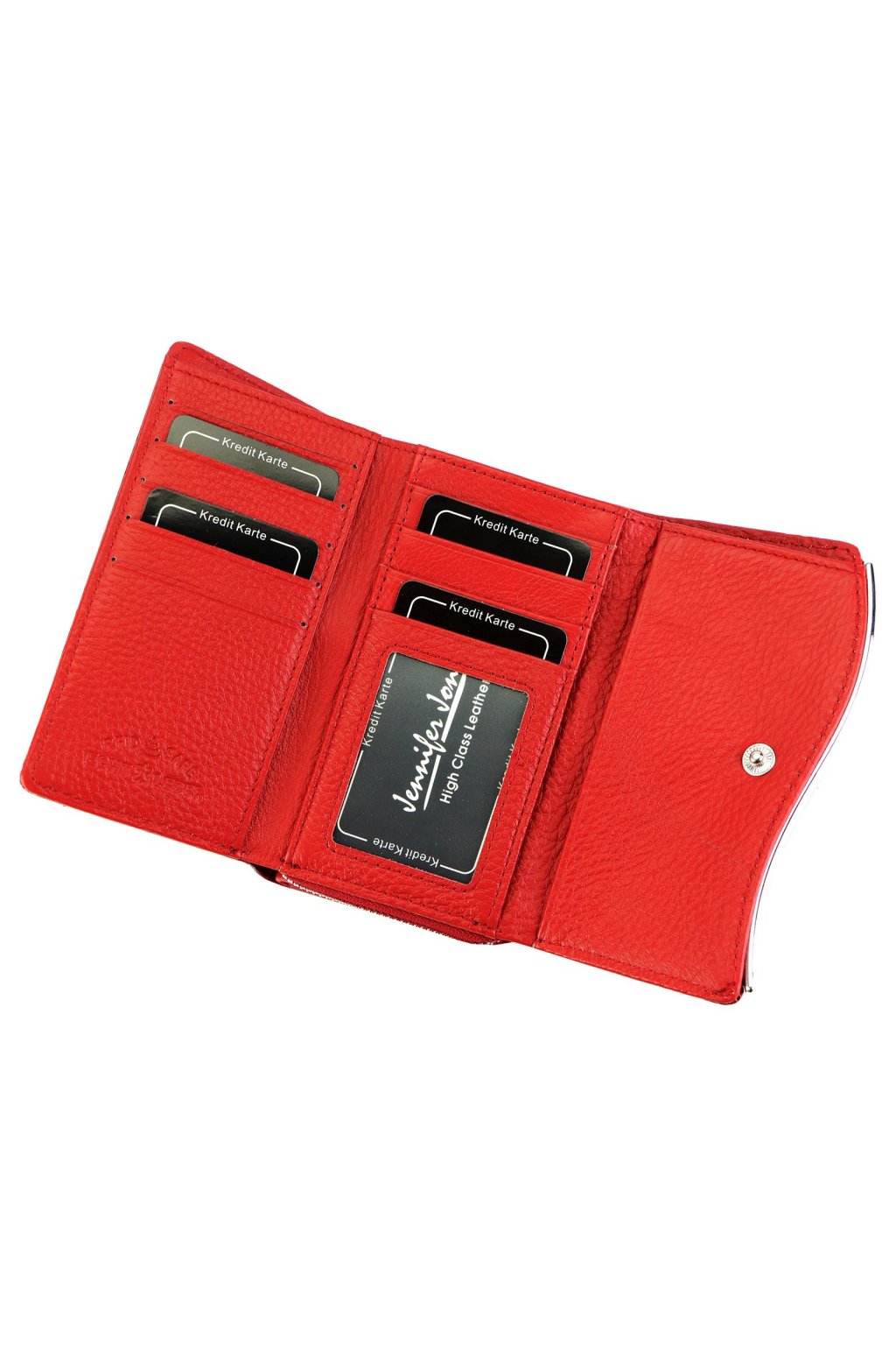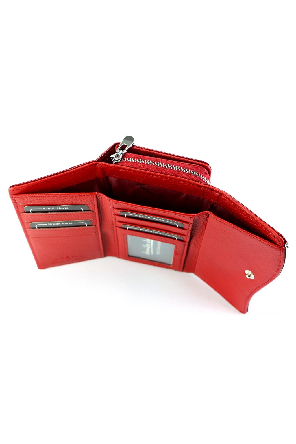 Uvnitř se nachází dostatek přihrádek na karty, doklady a bankovky. Součástí je zipová kapsa na mince, okénko na fotografii či doklad a přehledné členění pro každodenní přehled.