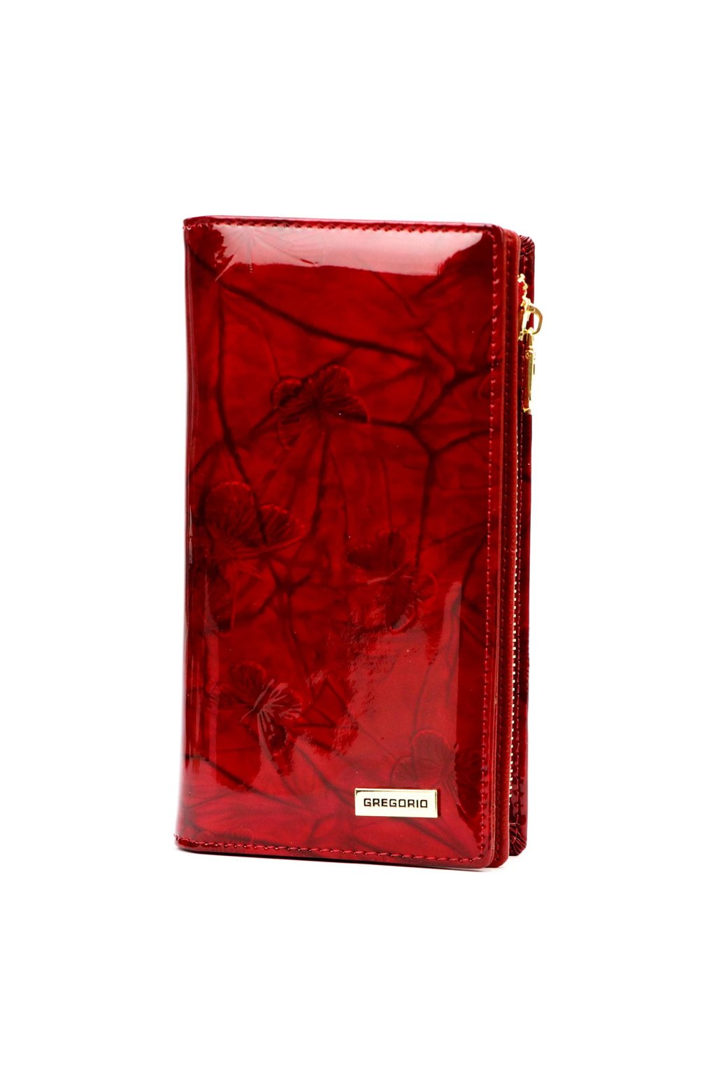 Elegantní dámská peněženka s jemným reliéfem motýlů zaujme svým originálním designem a precizním zpracováním. Lesklý povrch a kovové logo dodávají doplňku luxusní vzhled. Zapínání na druk je doplněno kvalitním kovovým prvkem pro snadné a bezpečné používání.