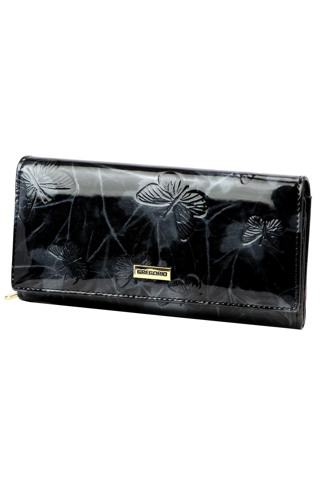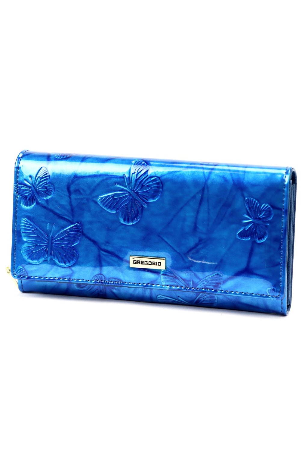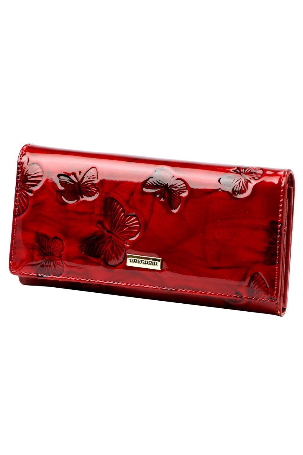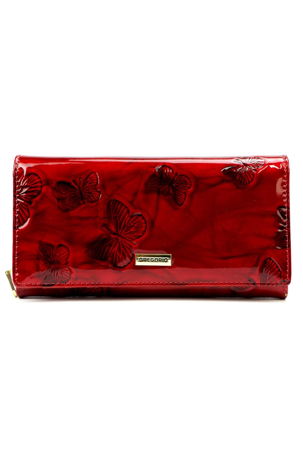 Elegantní dámská peněženka s jemným reliéfem motýlů zaujme svým originálním designem a precizním zpracováním. Lesklý povrch a kovové logo dodávají doplňku luxusní vzhled. Zapínání na druk je doplněno kvalitním kovovým prvkem pro snadné a bezpečné používání.