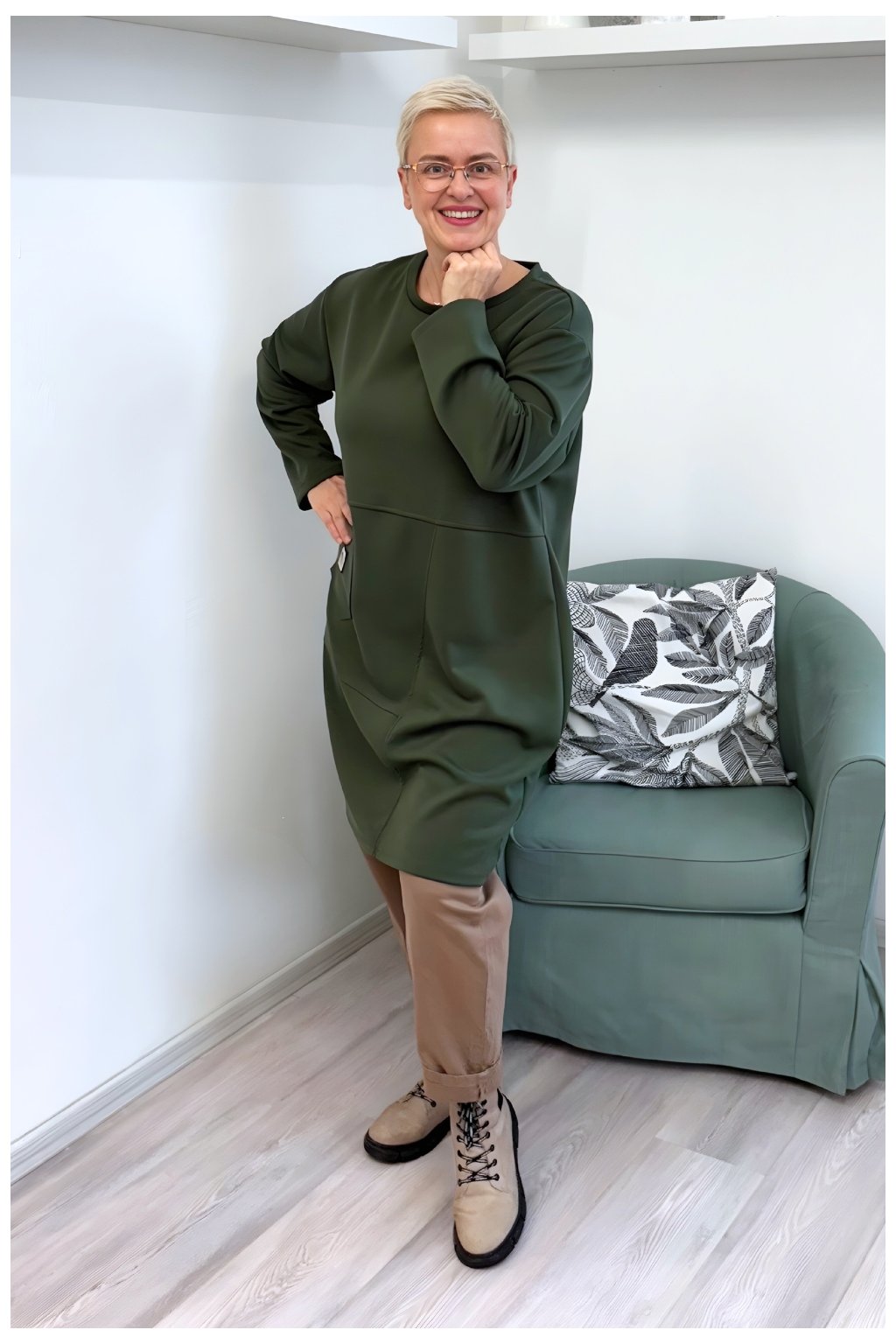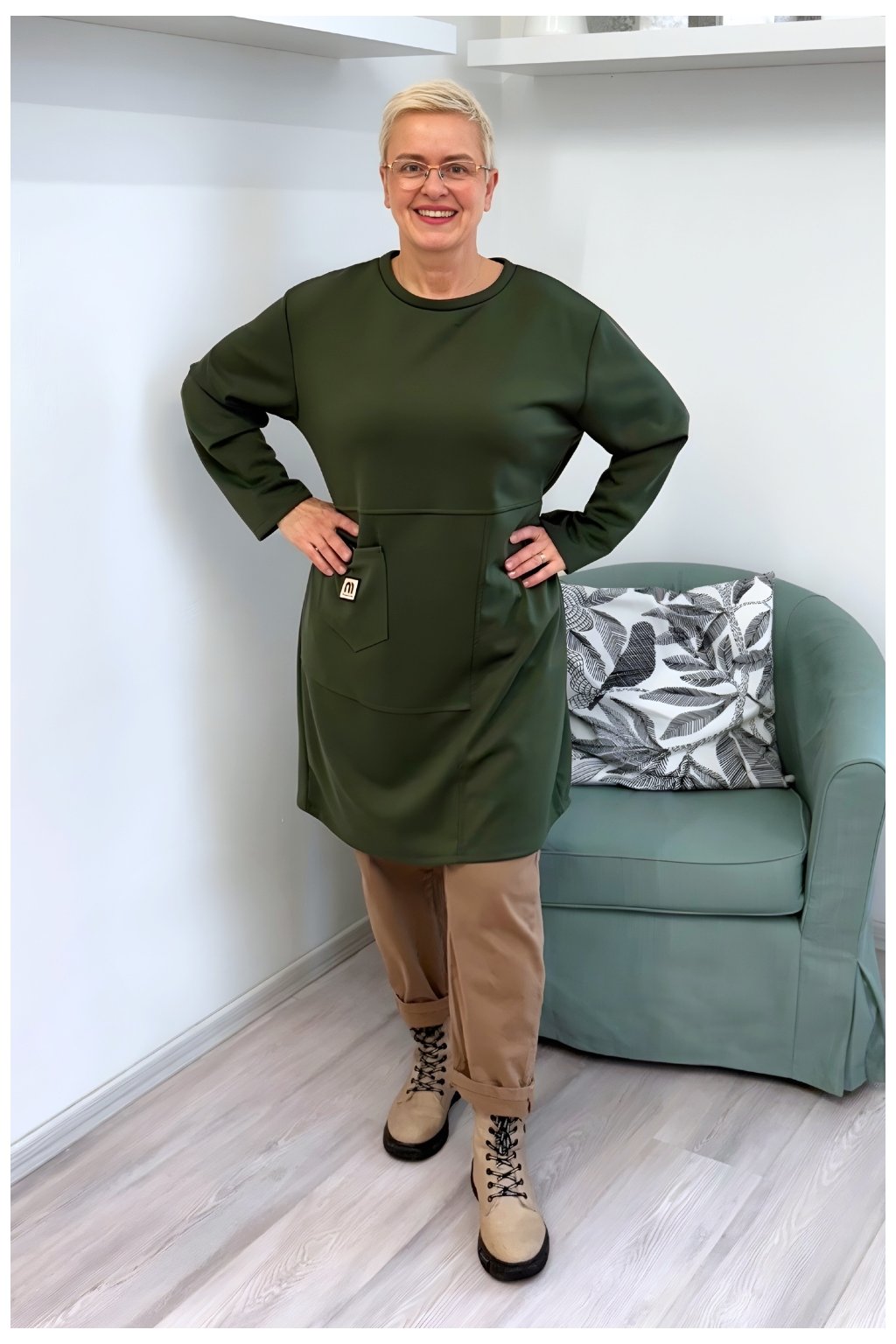 Dámské šaty Plus Size s kapsou a 3 4 rukávy khaki BLANKA STRAKA 01