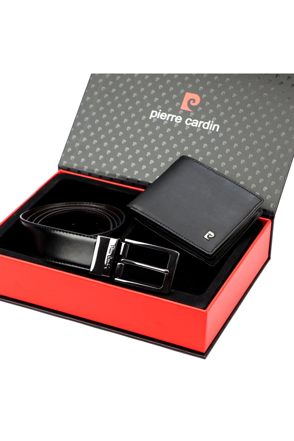 dárkový set Pierre Cardin, černá pánská peněženka, pánský opasek s přezkou, elegantní sada pro muže, pánské doplňky Pierre Cardin, tenká peněženka, luxusní dárek pro muže, sada peněženka a pásek