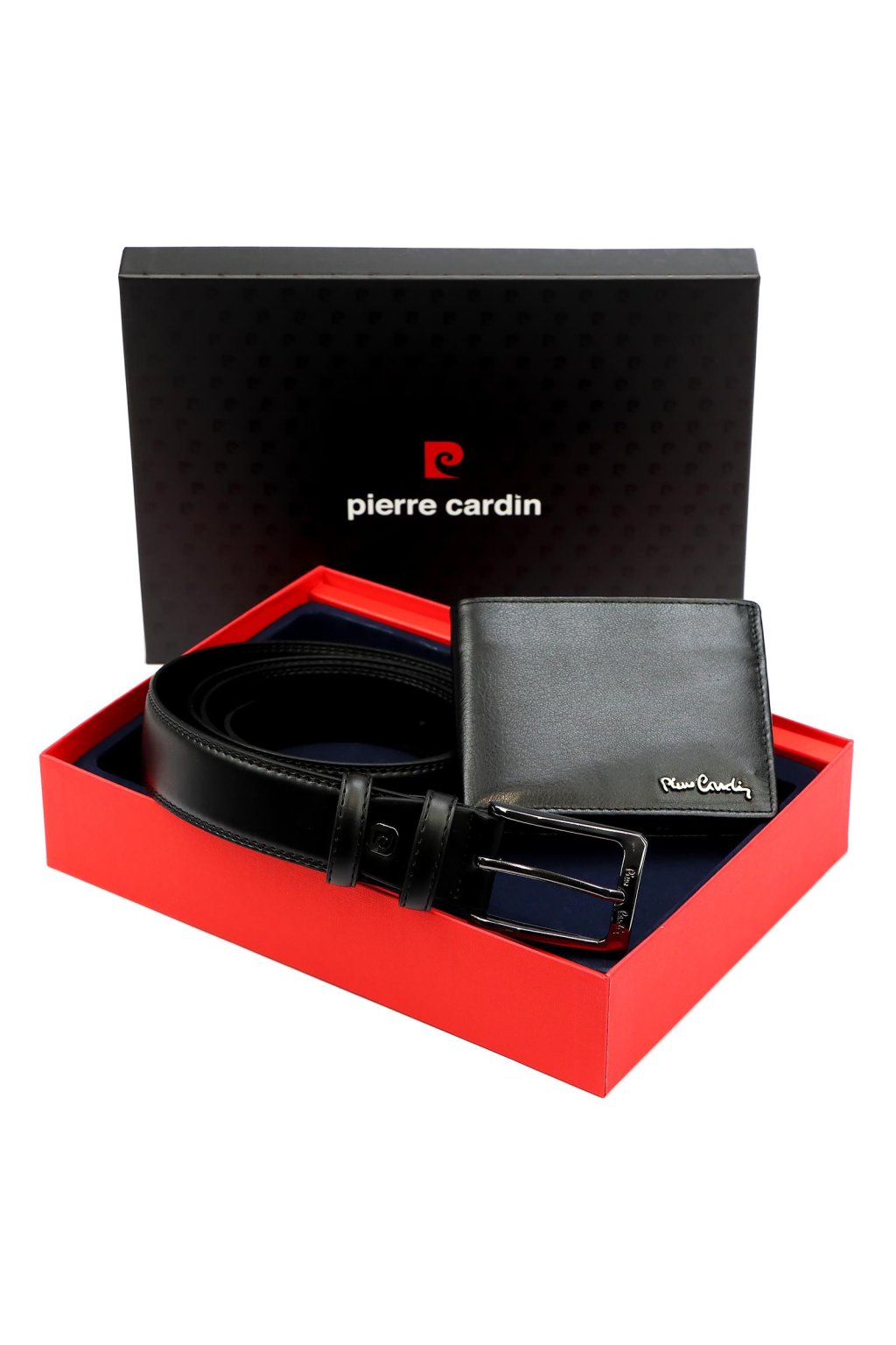 dárková sada Pierre Cardin, pánská kožená peněženka, kožený opasek, stylový dárek pro muže, elegantní pánské doplňky, černá peněženka Pierre Cardin, luxusní sada peněženka a pásek