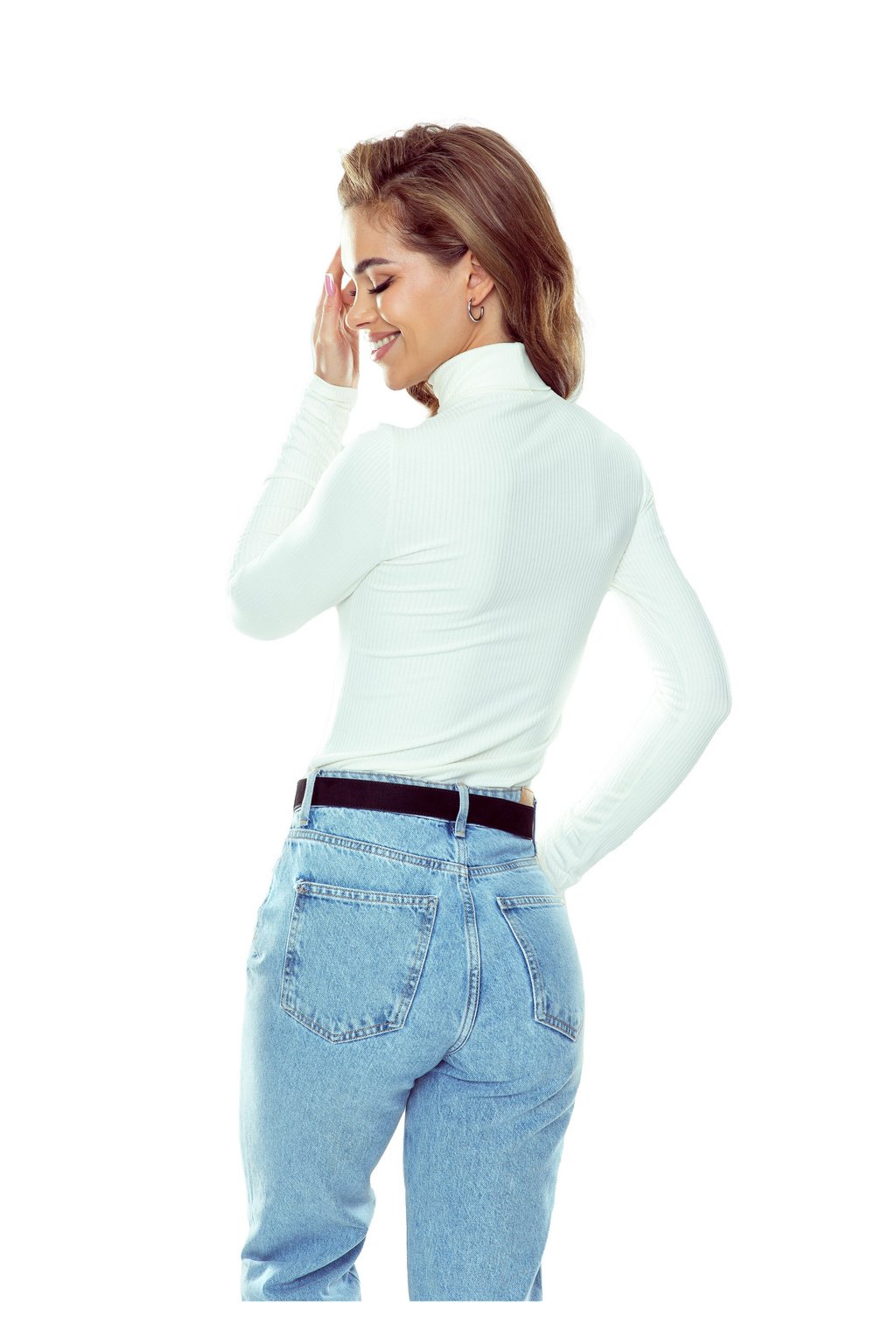 Vypasovaná košilka s dlouhými rukávy a stojáčekem. Vyrobeno z žebrované pleteniny (široký pruh), která se dokonale přizpůsobí postavě. K dispozici ve čtyřech barvách: bílá, černá, amaranth a ecru.