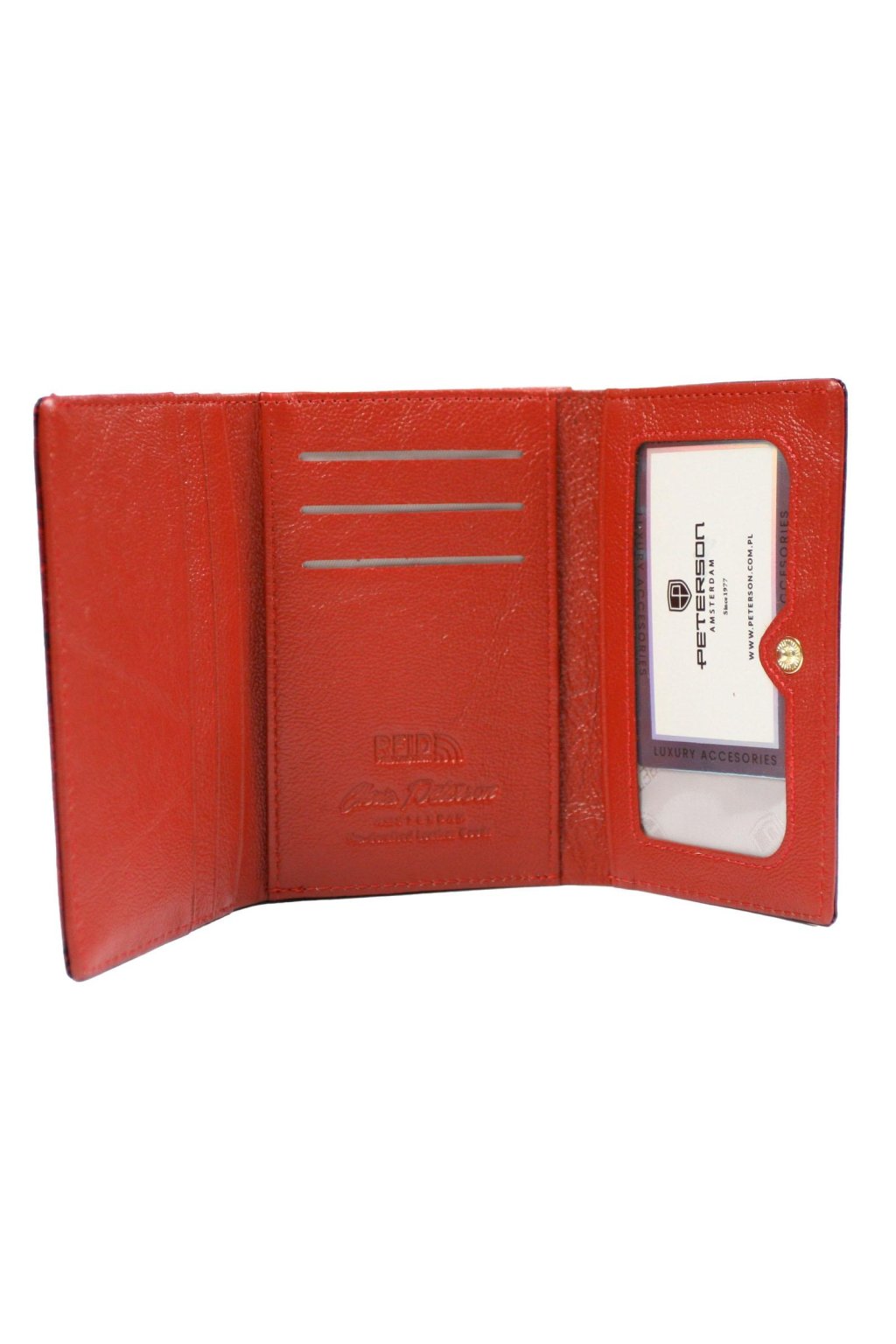 Peněženka nabízí přihrádky na bankovky, doklady a karty, doplněné o prostornou část na mince uzavíratelnou kovovým mechanismem. Díky přehlednému členění poskytuje dostatek prostoru a pohodlí při používání.