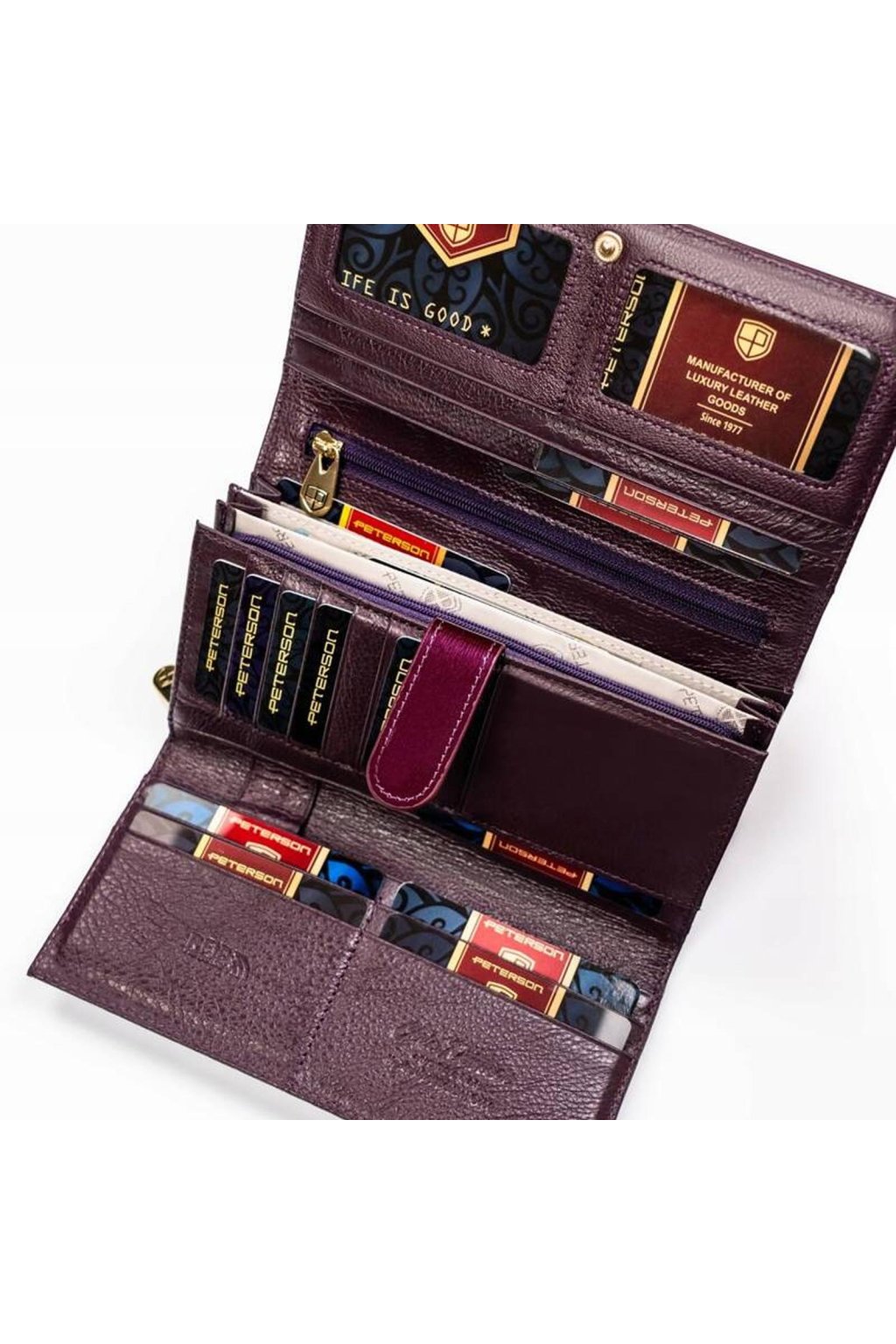 Uvnitř se nachází přihrádky na platební i věrnostní karty, kapsy na bankovky a samostatná část na mince uzavíratelná zipem. Praktické rozvržení umožňuje přehledné uspořádání všech drobností.