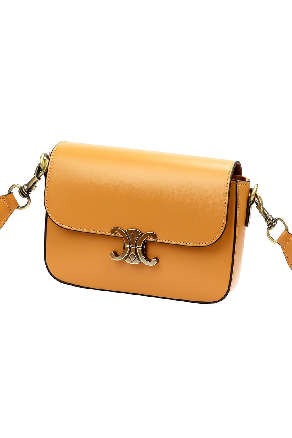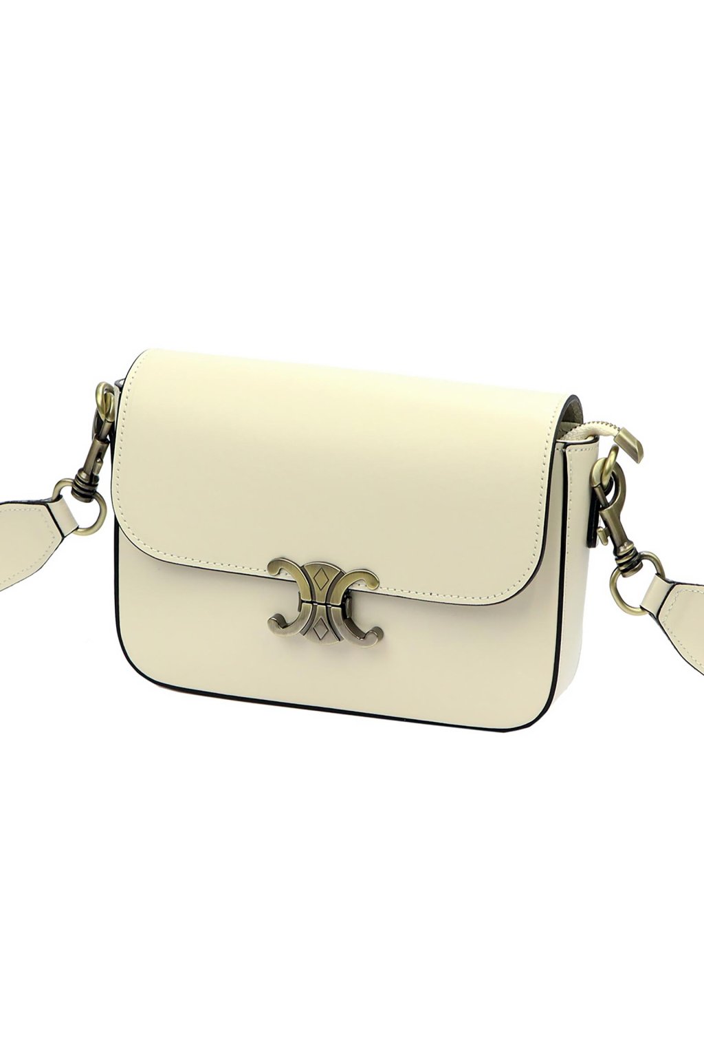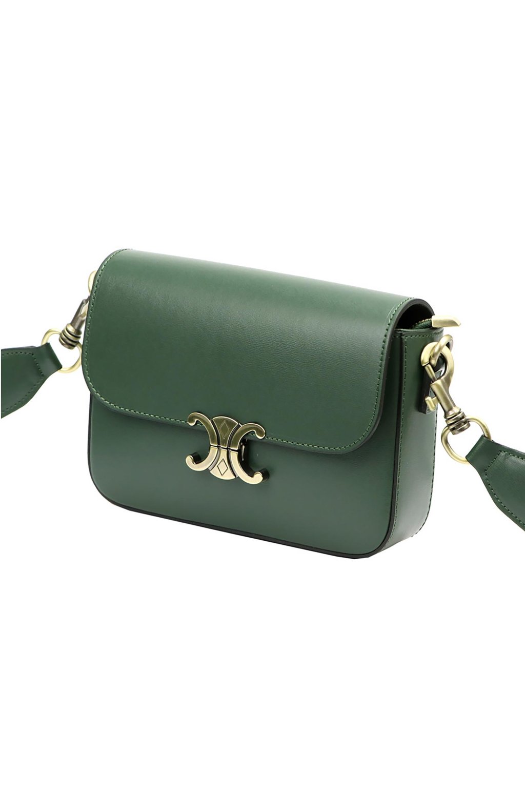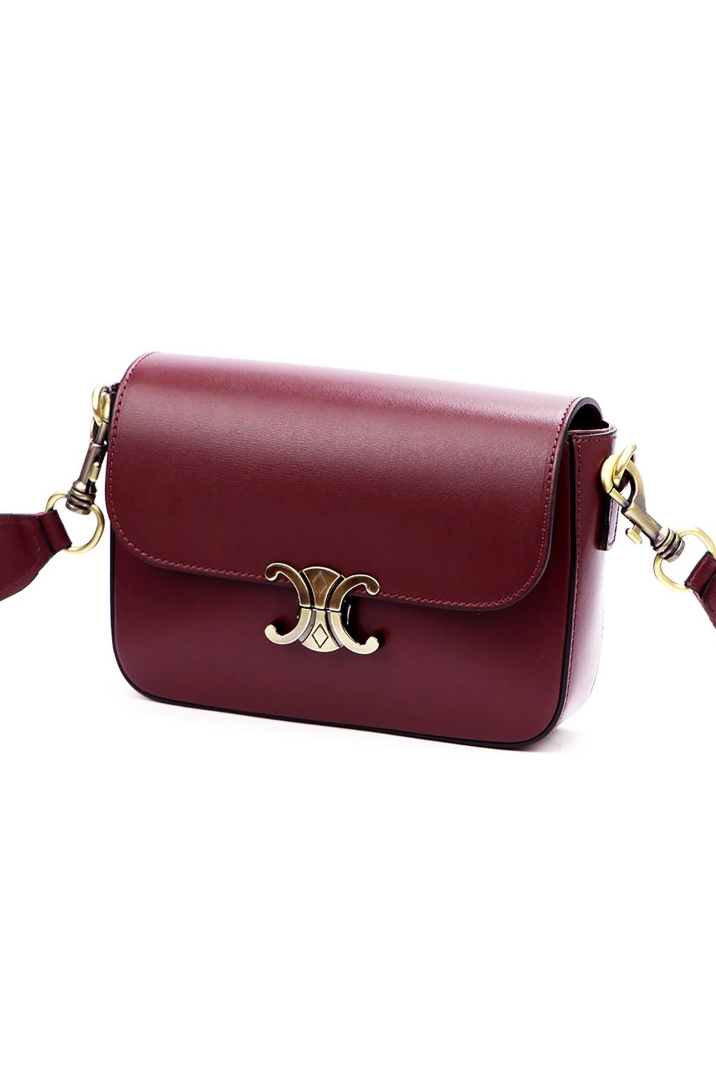 Minimalistická kabelka z prvotřídní hladké lícové kůže potěší milovnice klasického stylu s moderním nádechem. Má jednoduchý, zaoblený tvar a efektní kovovou sponu ve tvaru dvou protilehlých poloměsíců. Uvnitř se nachází jednokomorový prostor s odolnou podšívkou a malou kapsičkou na zip. Hlavní prostor se uzavírá zipem, který chrání klopa s ozdobným kovovým zapínáním. Dlouhý popruh umožňuje pohodlné nošení na rameni nebo šikmo přes tělo.
