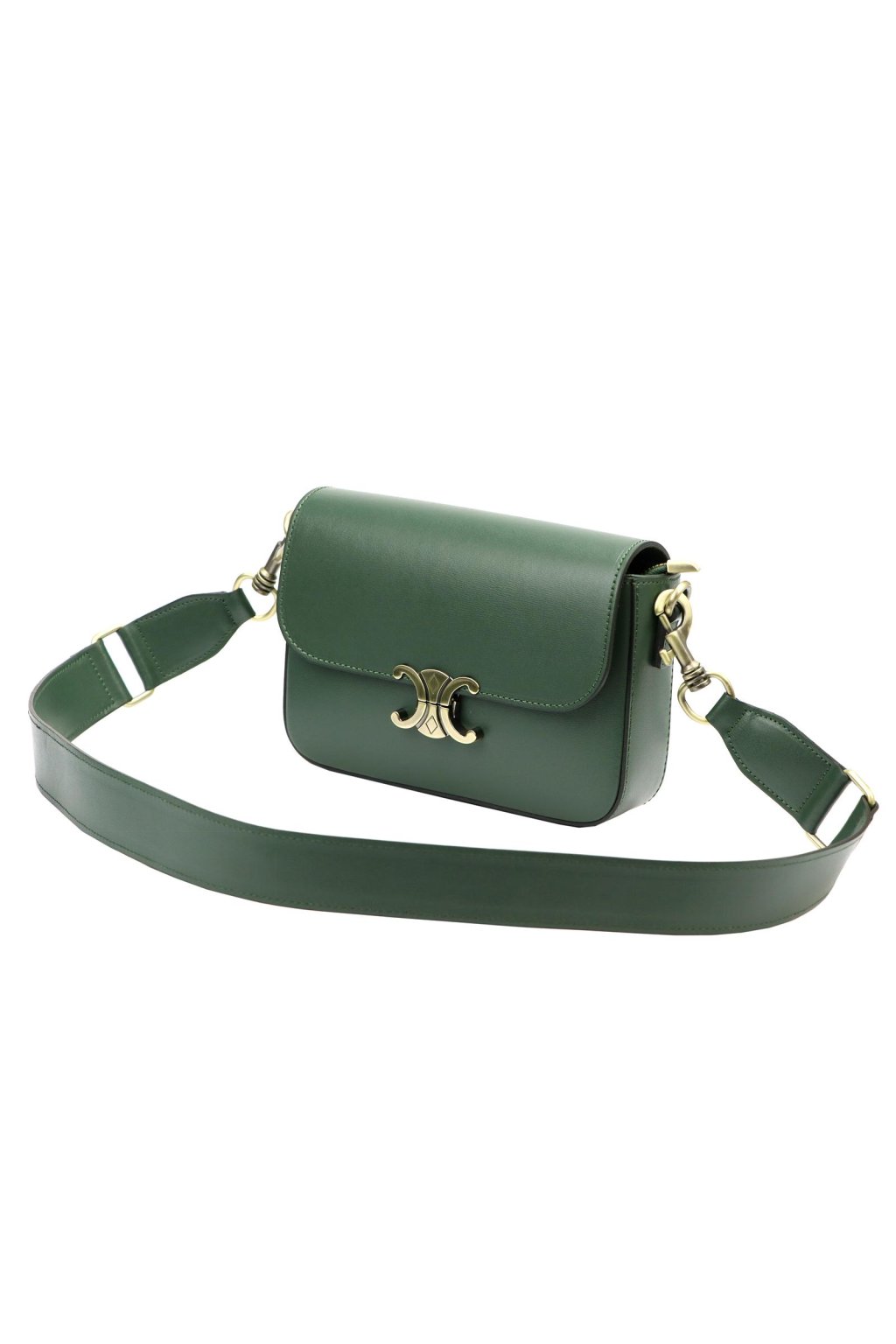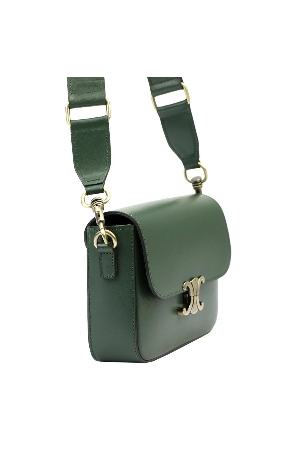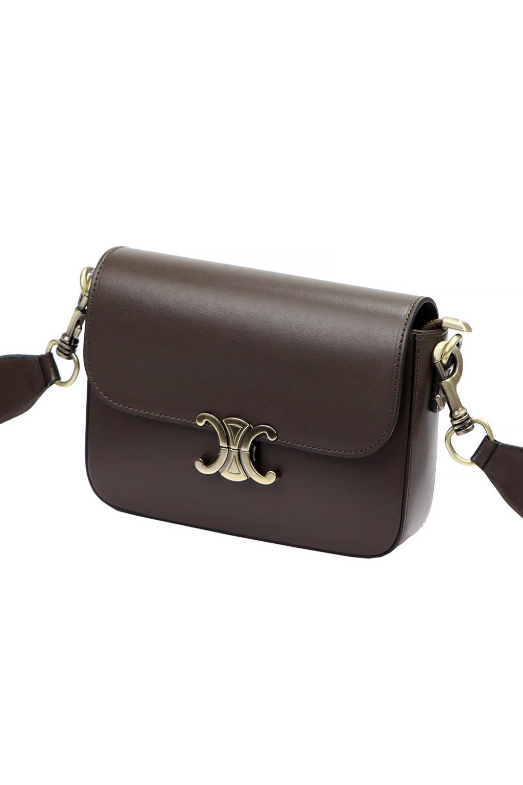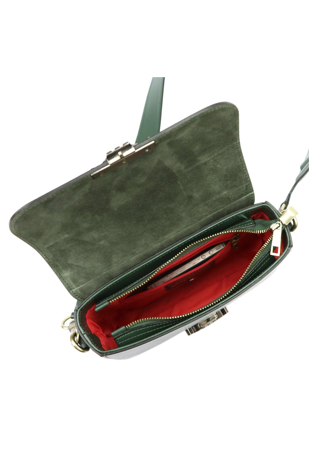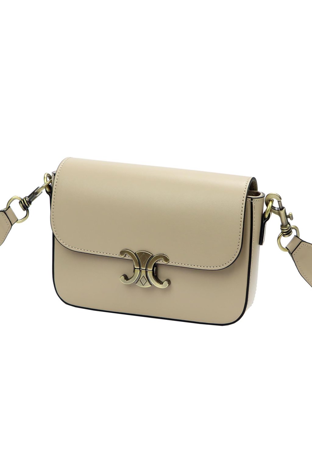 Minimalistická kabelka z prvotřídní hladké lícové kůže potěší milovnice klasického stylu s moderním nádechem. Má jednoduchý, zaoblený tvar a efektní kovovou sponu ve tvaru dvou protilehlých poloměsíců. Uvnitř se nachází jednokomorový prostor s odolnou podšívkou a malou kapsičkou na zip. Hlavní prostor se uzavírá zipem, který chrání klopa s ozdobným kovovým zapínáním. Dlouhý popruh umožňuje pohodlné nošení na rameni nebo šikmo přes tělo.