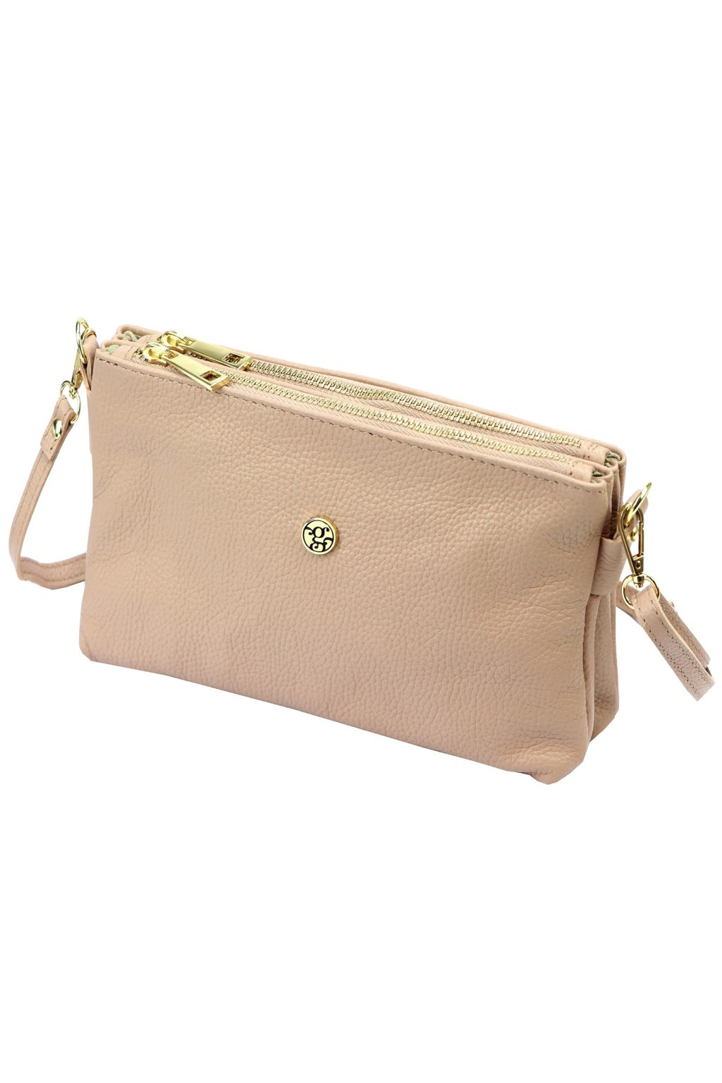 Tato nadčasová kabelka je vyrobena z přírodní lícové kůže s jemnou strukturou a zaujme svou jednoduchou elegancí i praktickým vnitřním uspořádáním. Dvě samostatné komory s pevnou podšívkou jsou vybavené kapsou na zip a přihrádkou na telefon, přičemž každá se uzavírá vlastním kovovým zipem. Zadní strana kabelky nabízí další bezpečnou kapsu. Díky nastavitelnému popruhu je ideální na nošení přes rameno nebo „cross-body“.