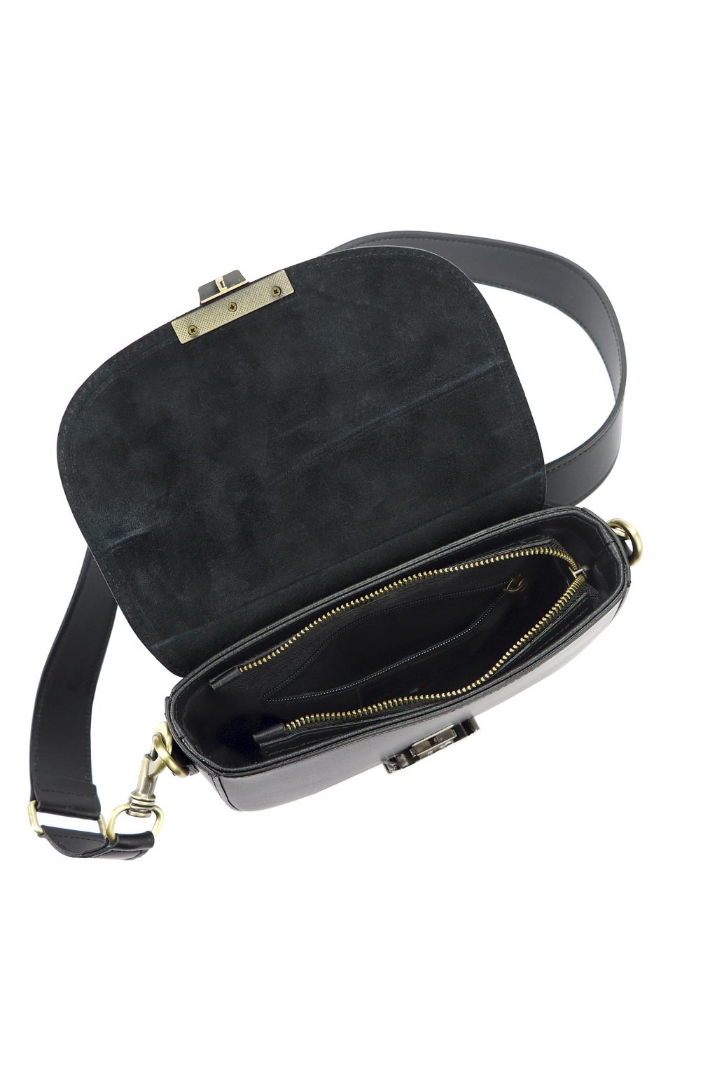 kožená kabelka – hladká kůže – crossbody styl – elegantní zapínání – černá kabelka přes rameno – nadčasový design