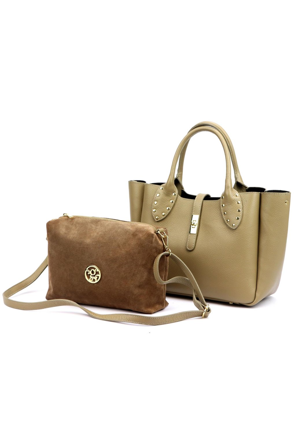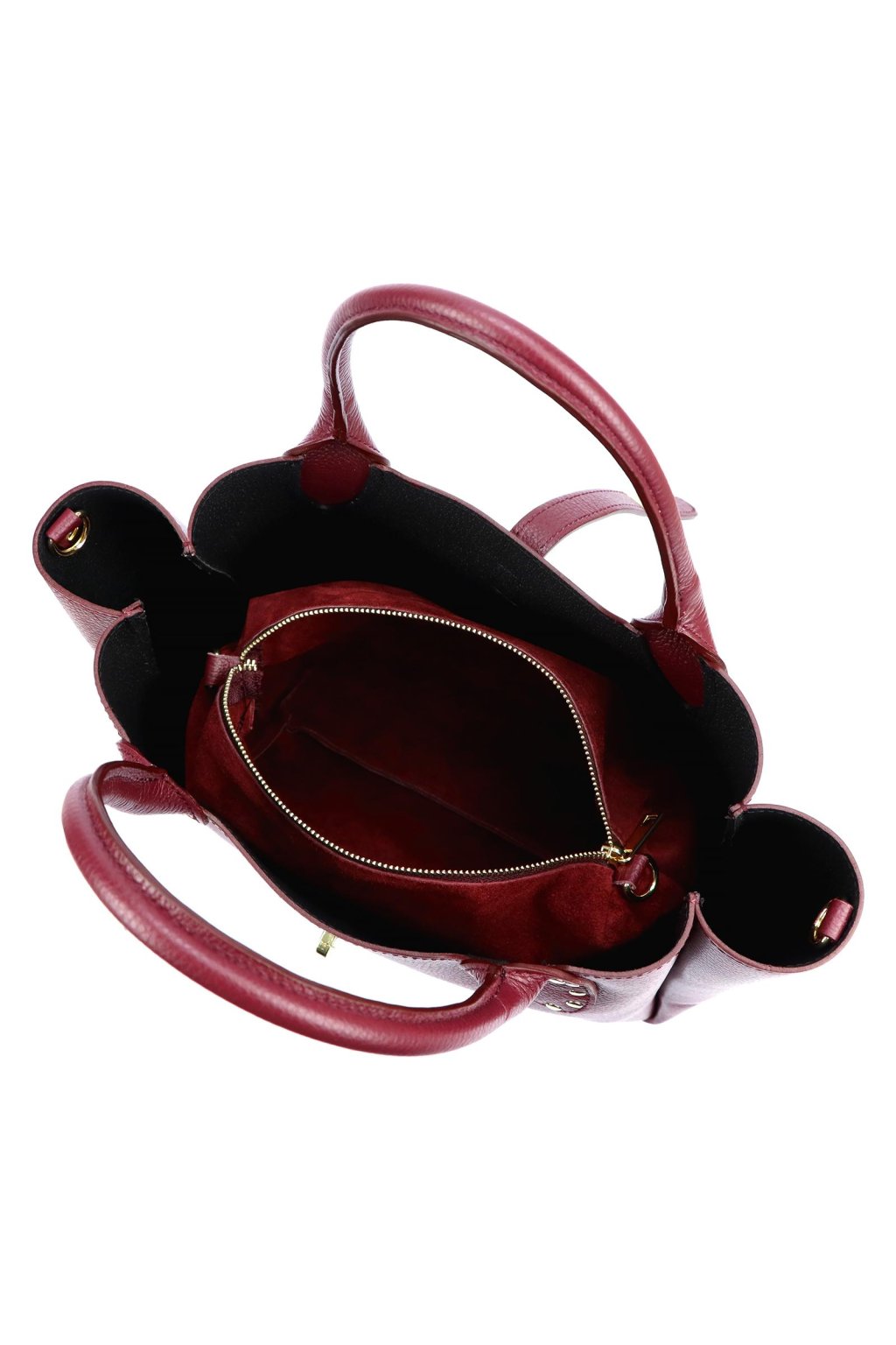 Elegantní kabelka s nadčasovým designem z přírodní kůže působí noblesně a prakticky zároveň. Pevná konstrukce se zdobenými kovovými detaily na uchách dodává luxusní vzhled. Součástí kabelky je vyjímatelná vnitřní taška, kterou lze samostatně nosit přes rameno díky nastavitelnému popruhu.