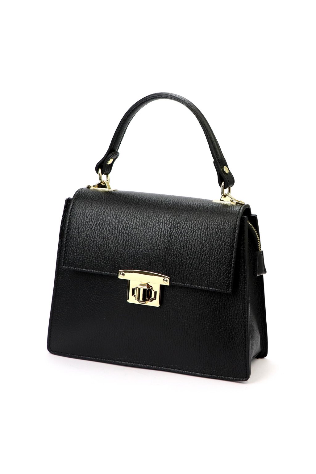 černá kožená kabelka, kabelka do ruky, strukturovaná kabelka, kabelka s otočným zapínáním, elegantní dámská kabelka, italská kabelka s popruhem, kabelka z pravé kůže