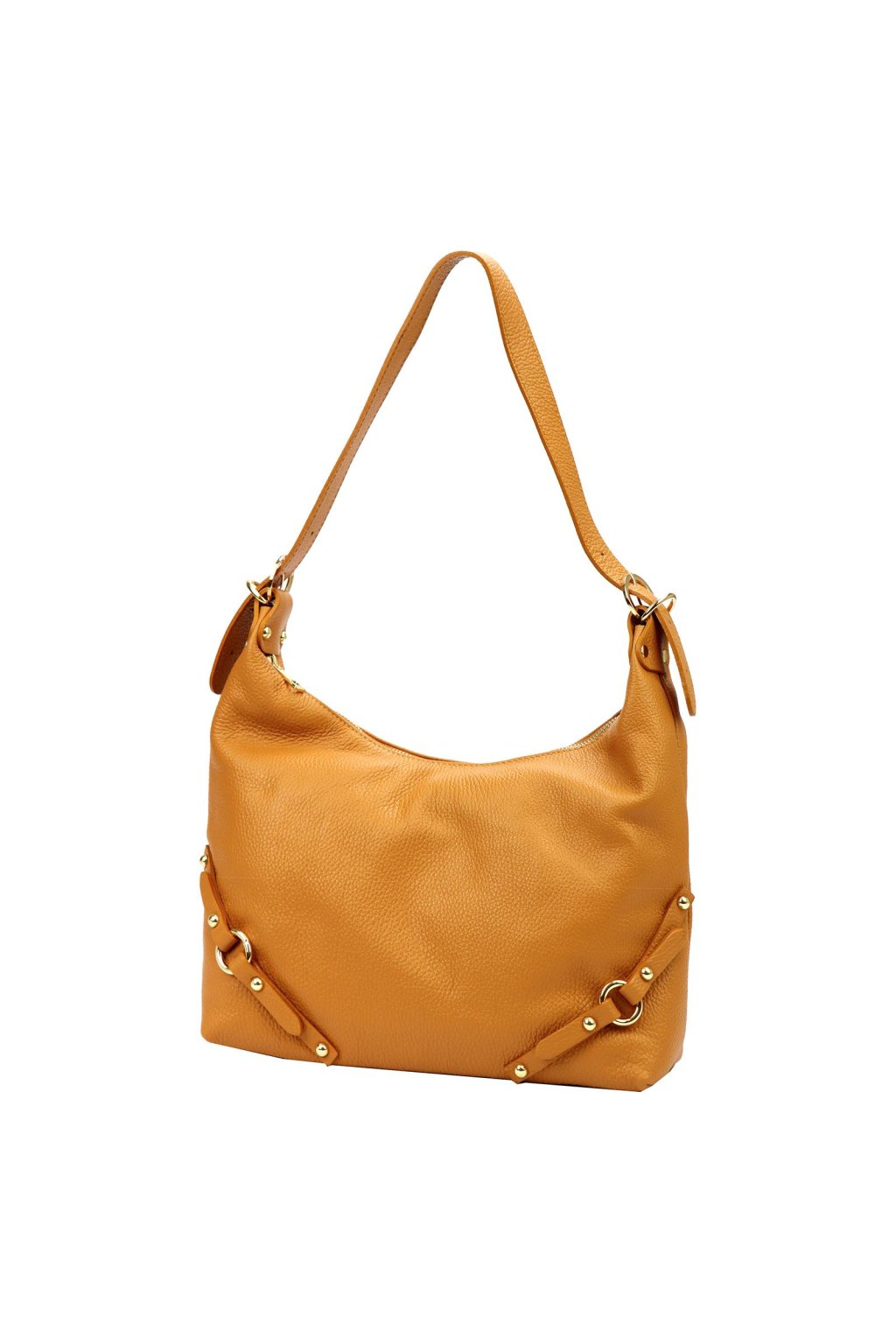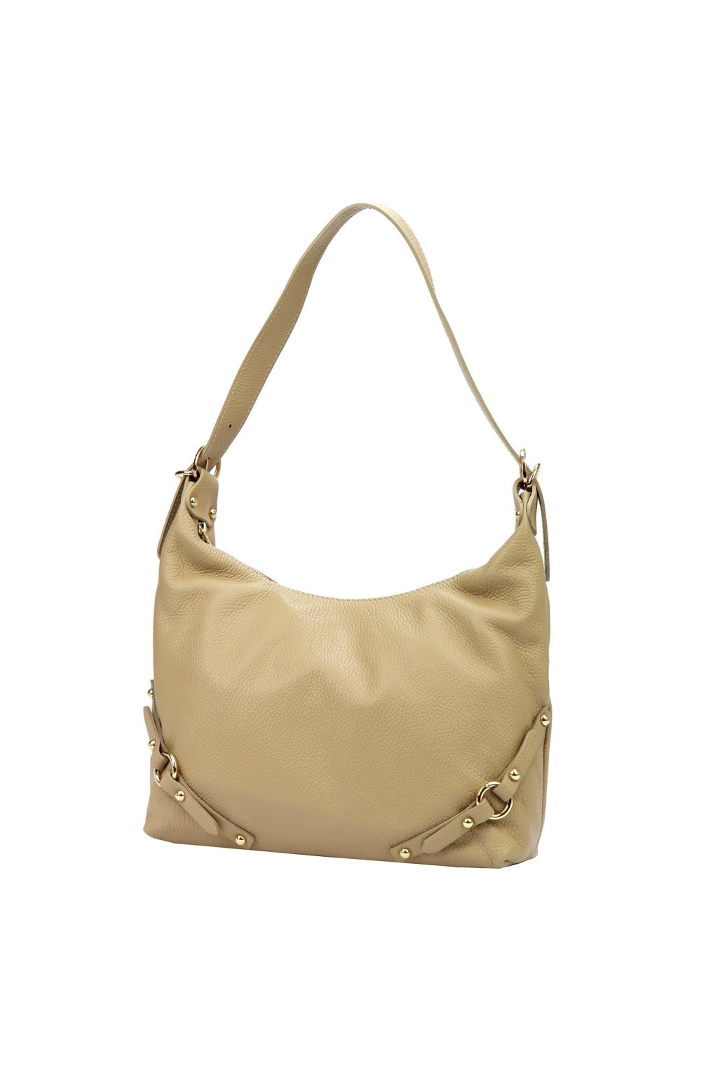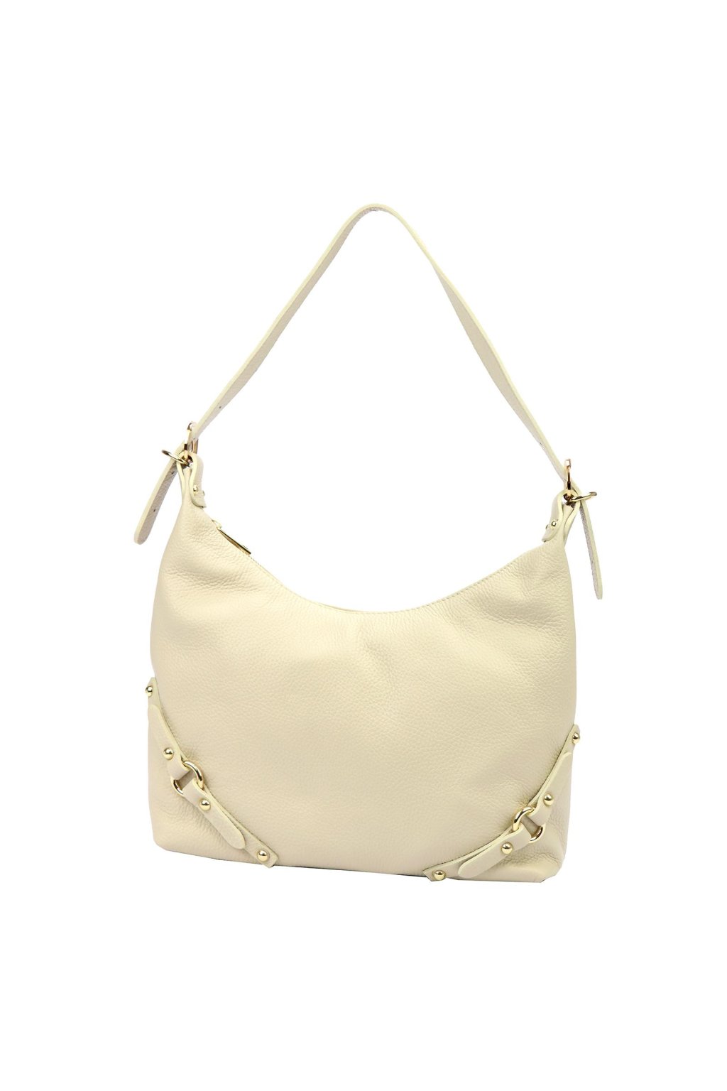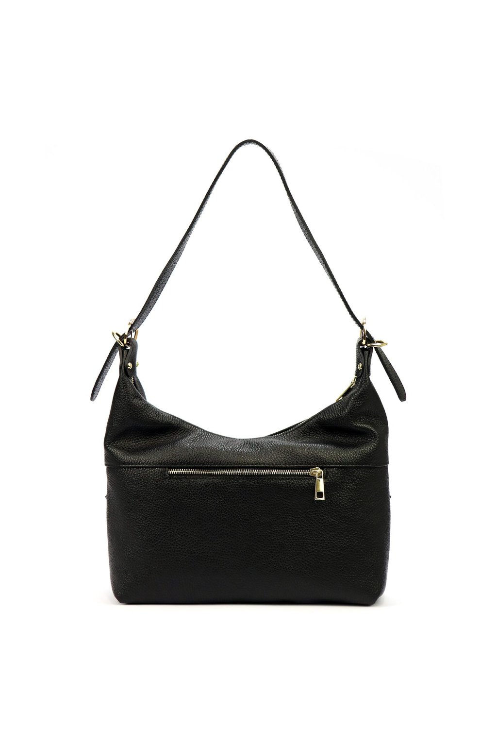 kabelka z přírodní kůže – měkký tvar – jemná struktura – zlaté detaily – zipové zavírání – podšívka – dlouhé ramínko – ležérní a elegantní styl