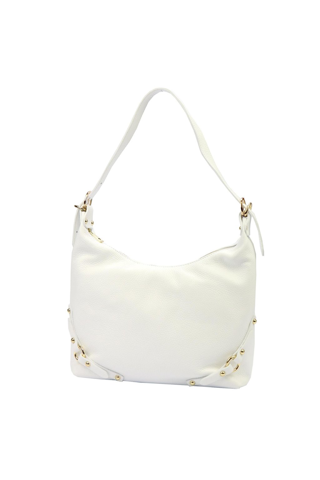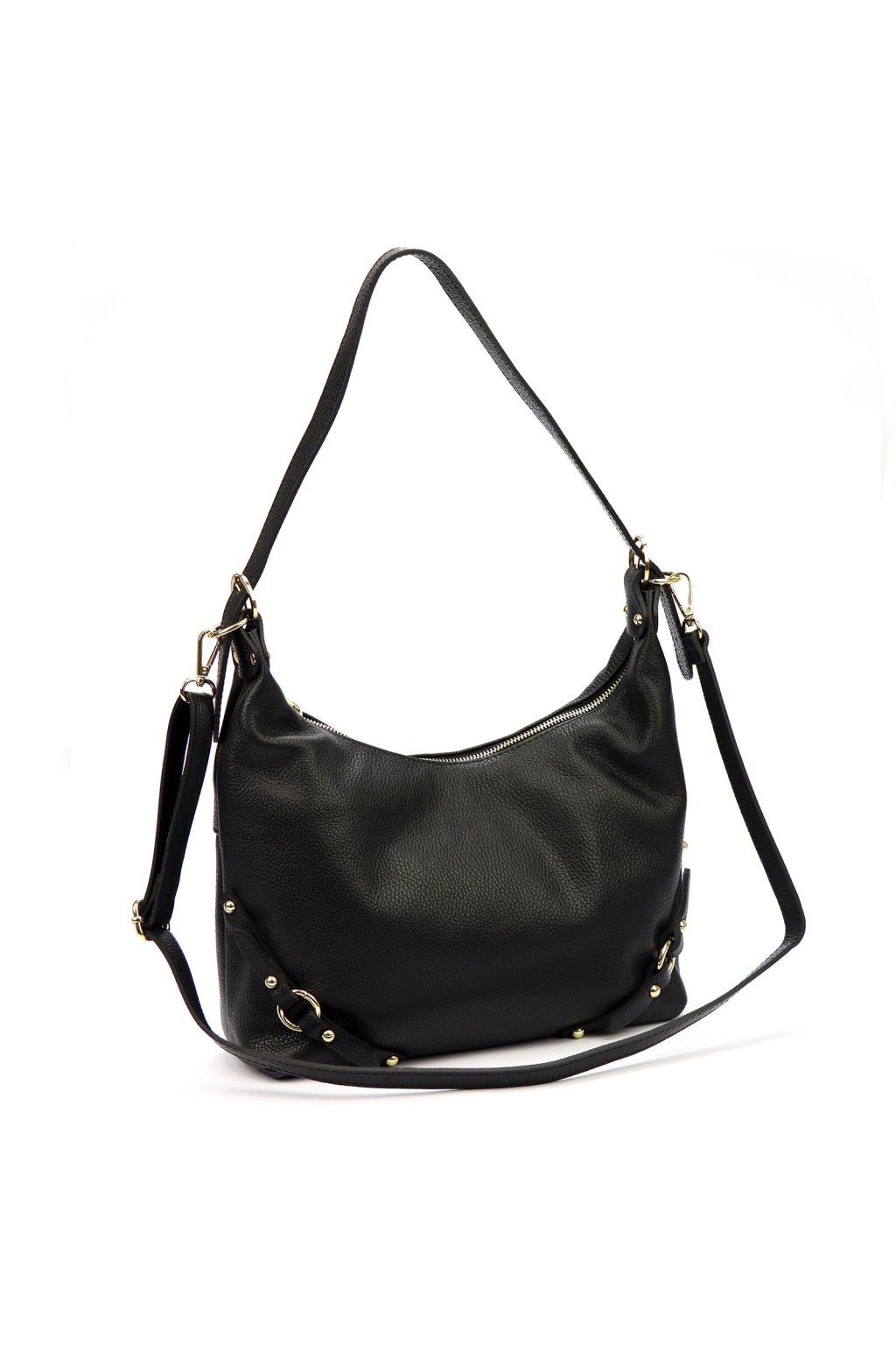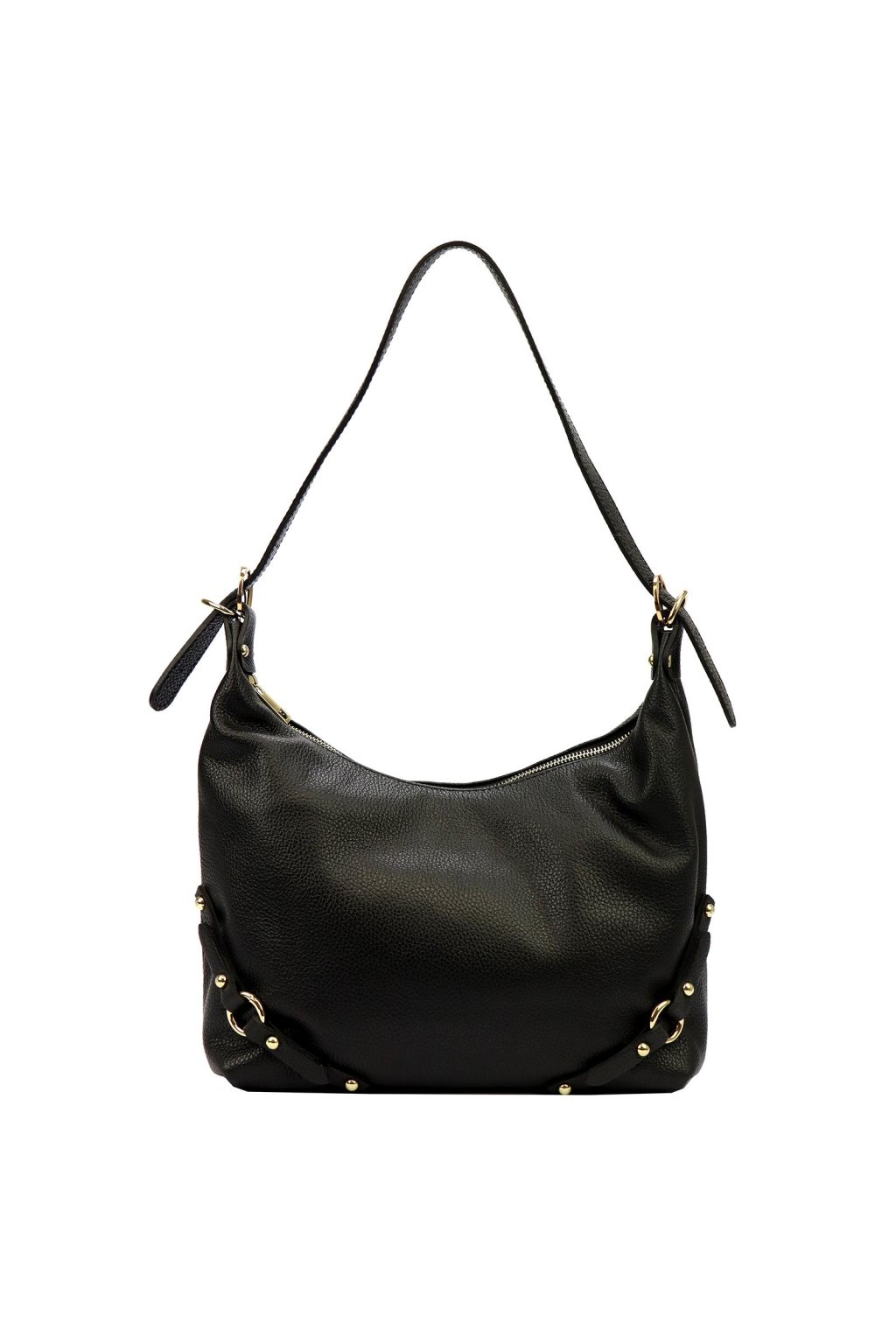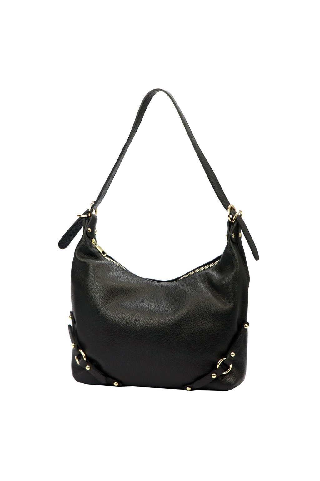 kabelka z přírodní kůže – měkký tvar – jemná struktura – zlaté detaily – zipové zavírání – podšívka – dlouhé ramínko – ležérní a elegantní styl