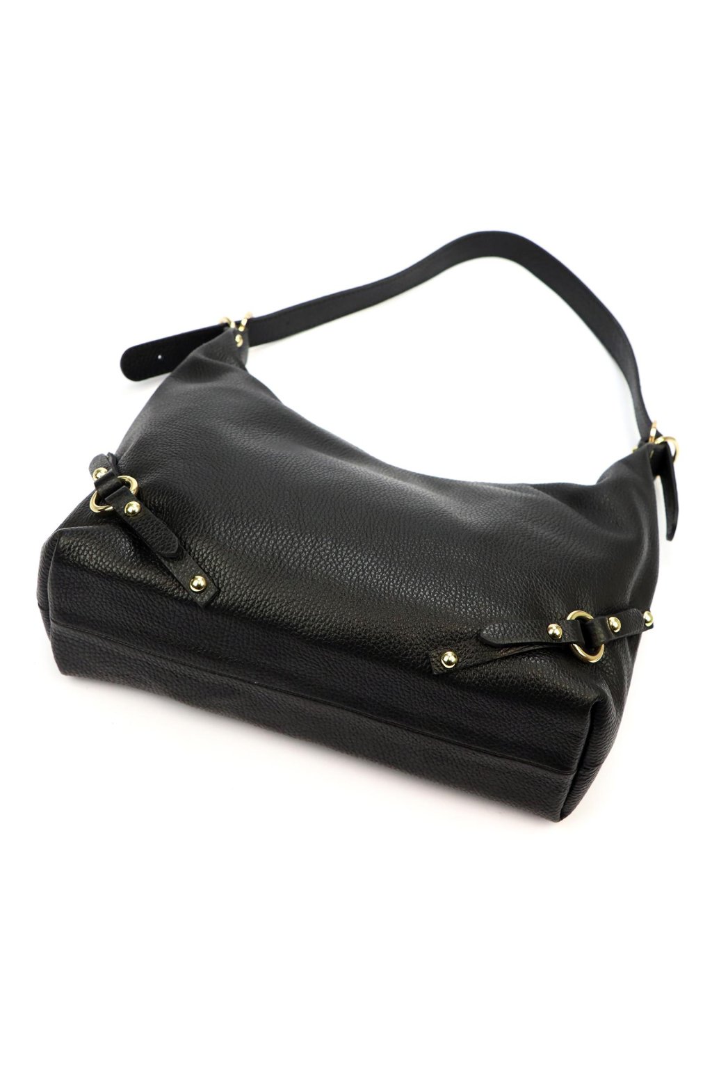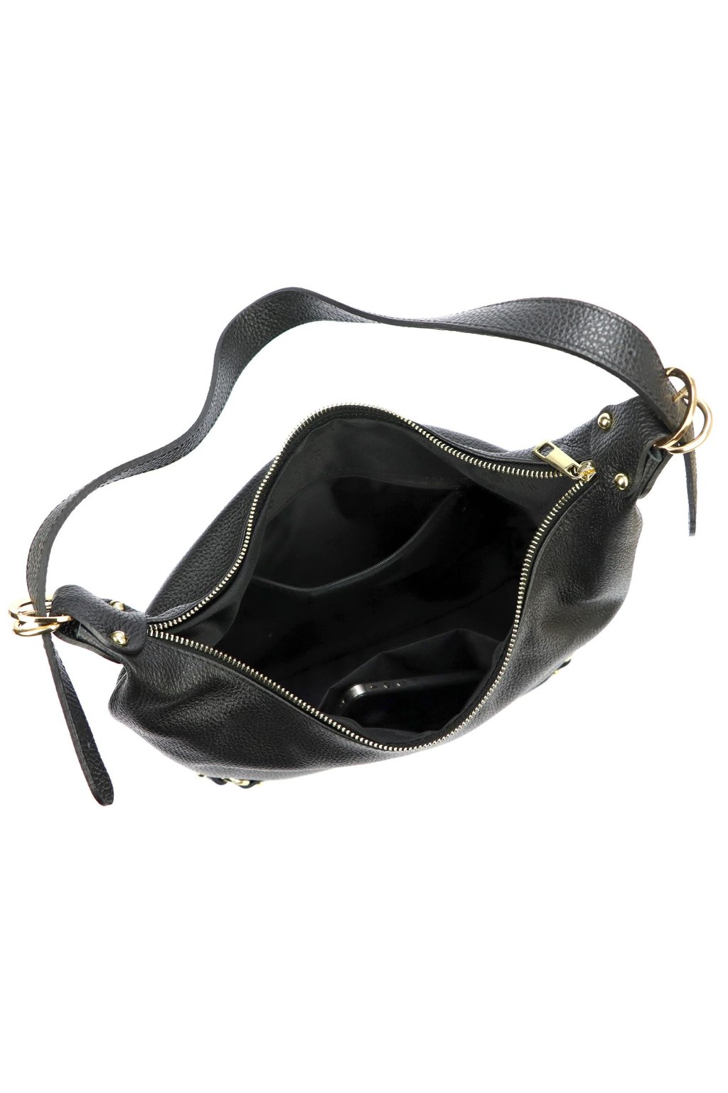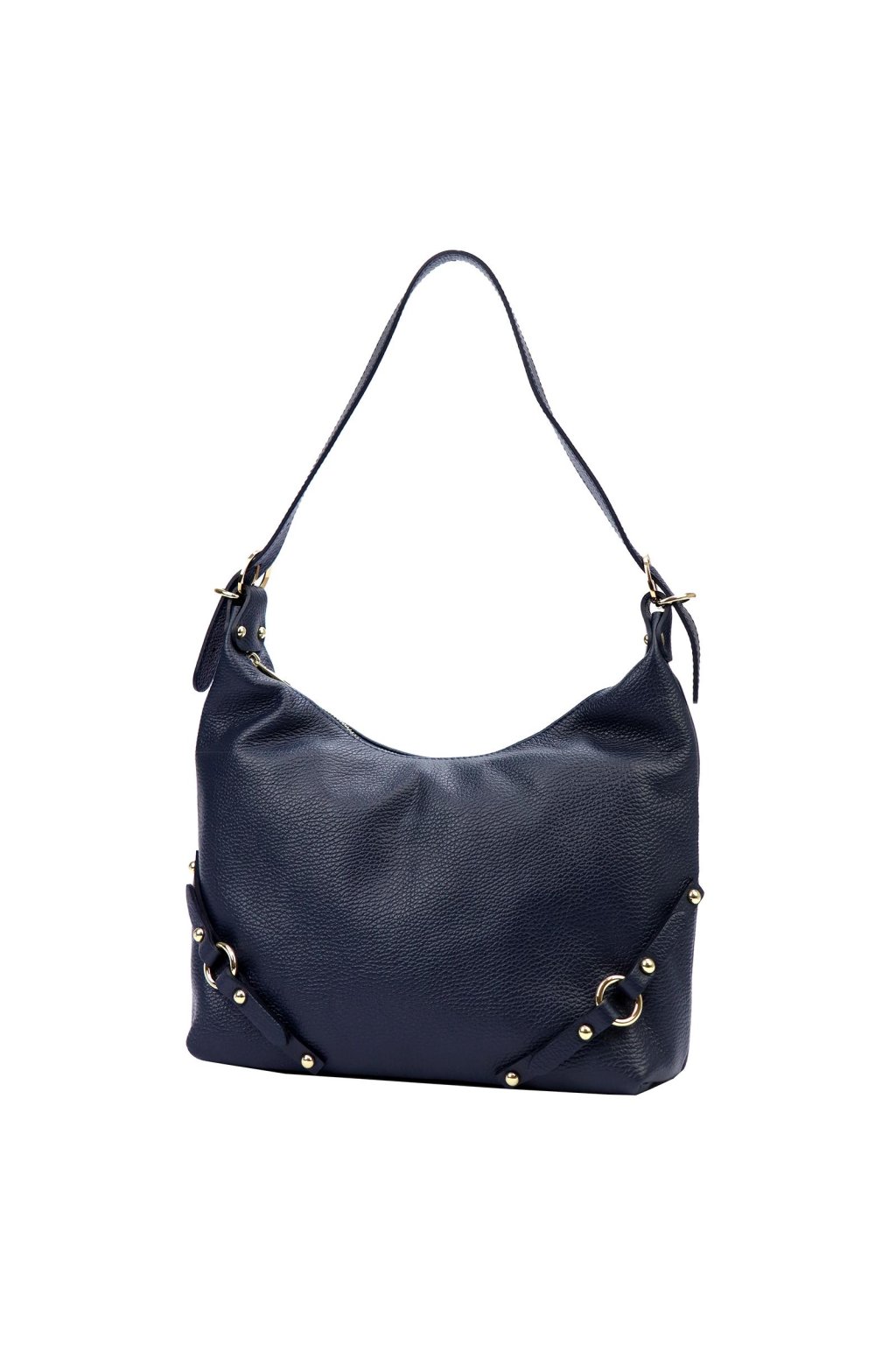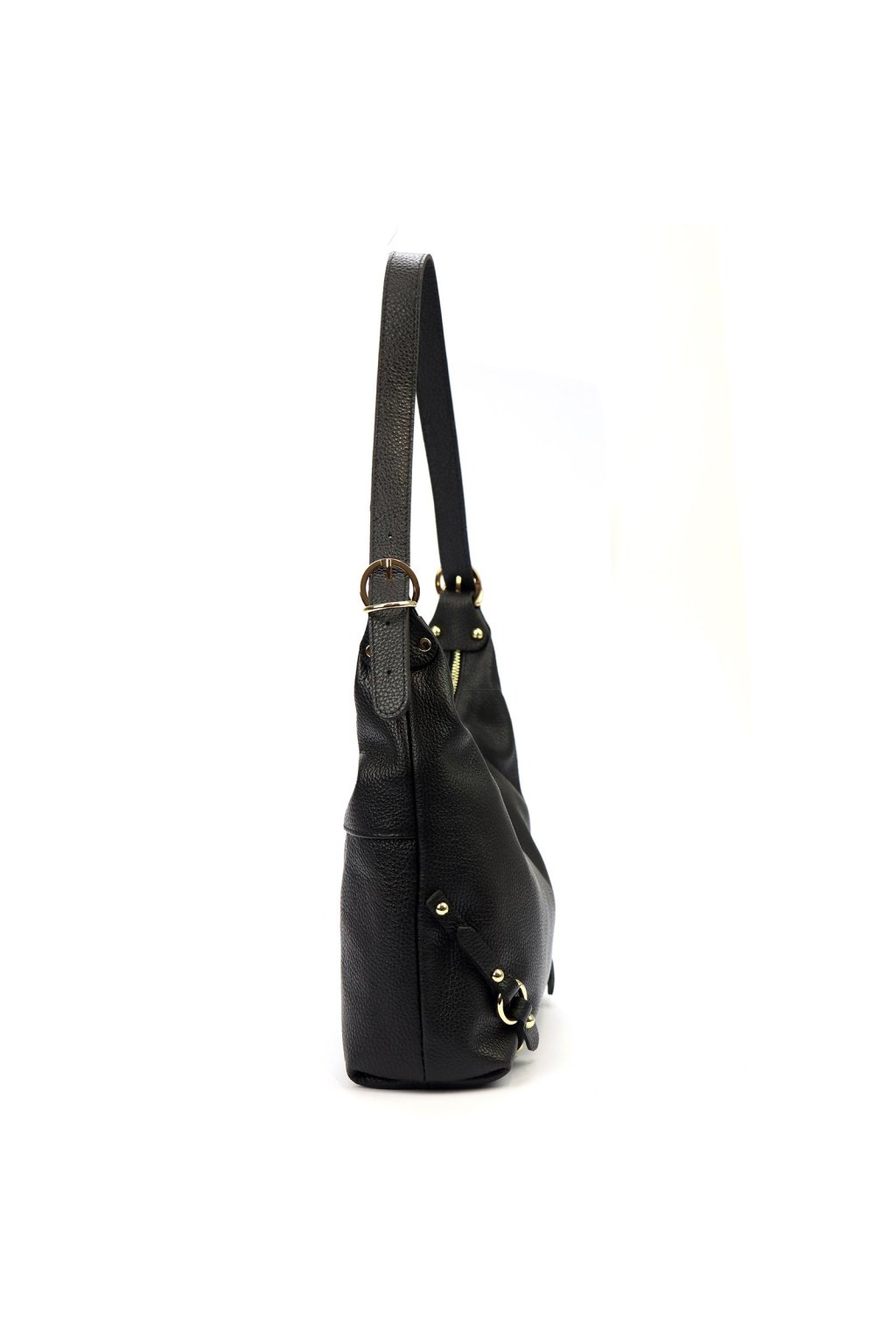 kabelka z přírodní kůže – měkký tvar – jemná struktura – zlaté detaily – zipové zavírání – podšívka – dlouhé ramínko – ležérní a elegantní styl