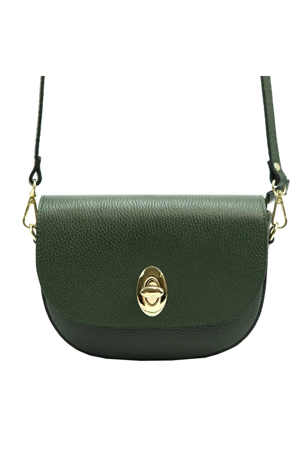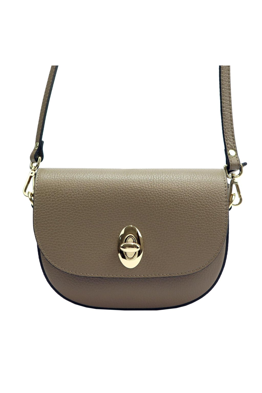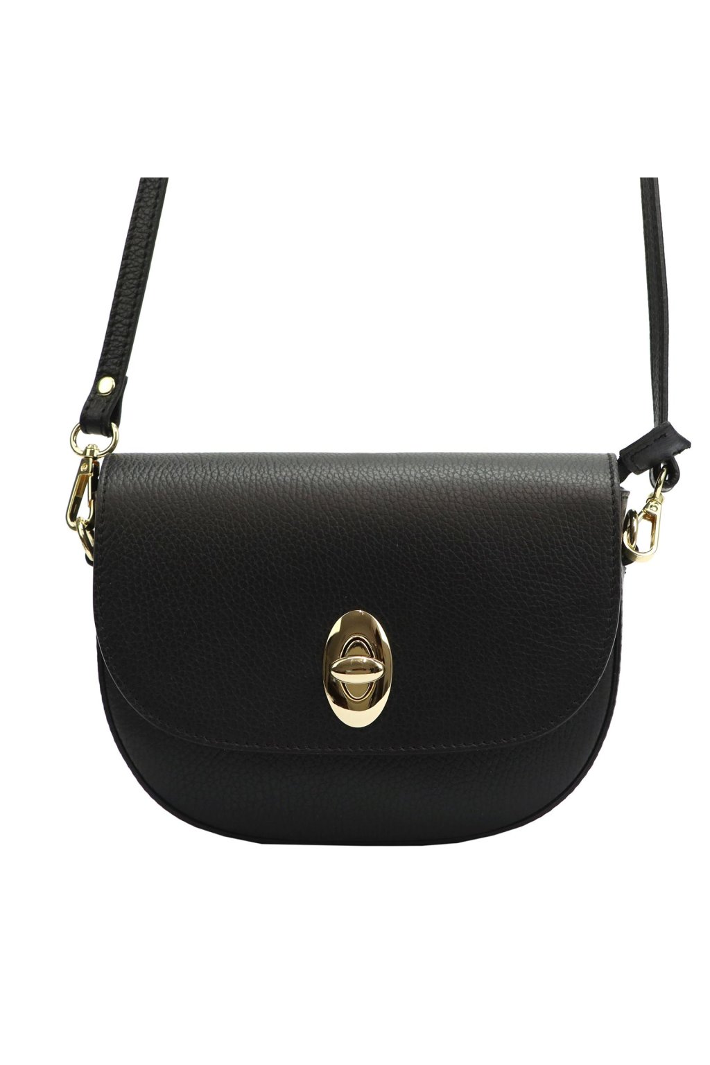 malá kabelka – přírodní kůže – oválná přezka – zip – klopa – crossbody – elegantní – praktická