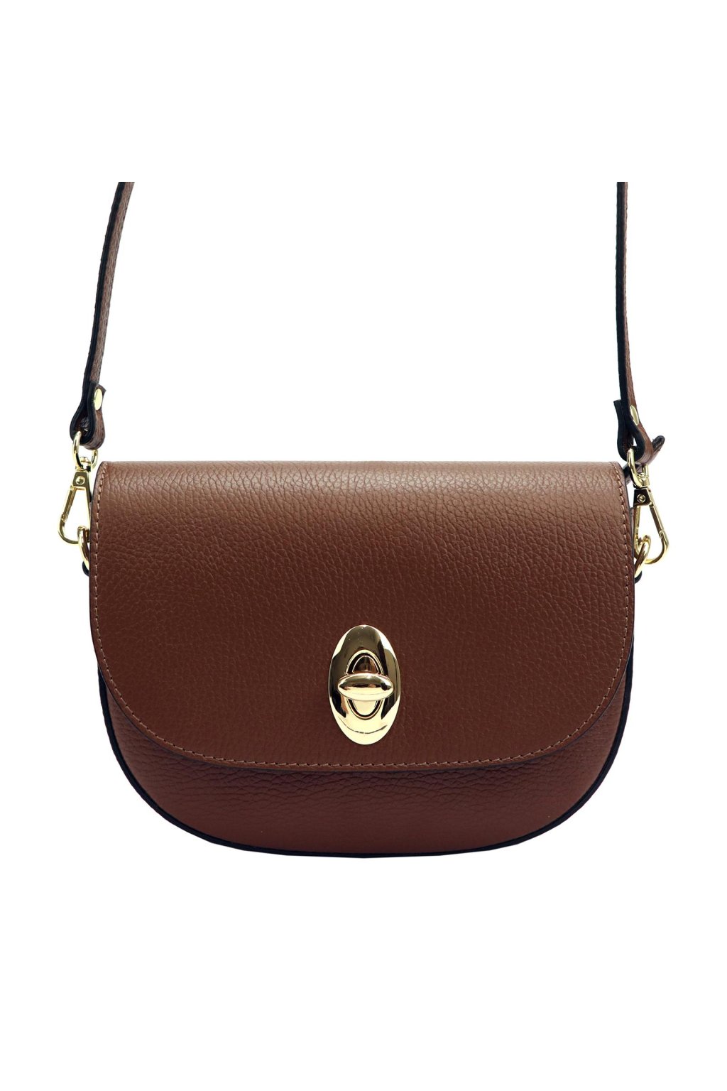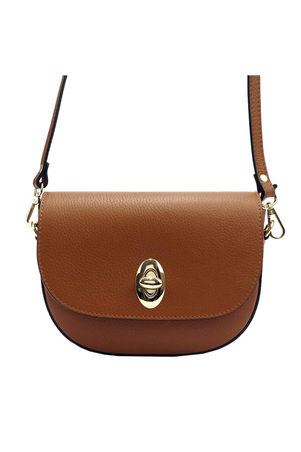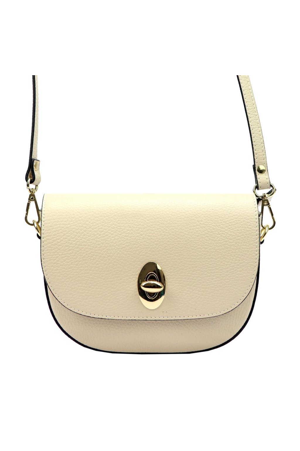 malá kabelka – přírodní kůže – oválná přezka – zip – klopa – crossbody – elegantní – praktická