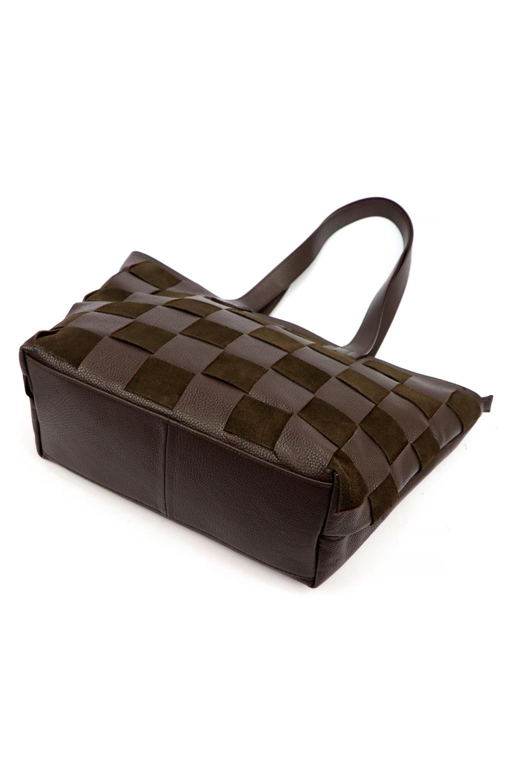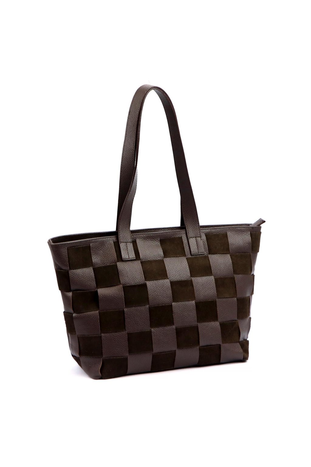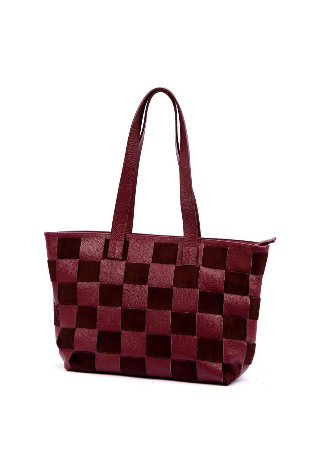 Kombinace pevné pravé kůže a broušené kůže vytváří atraktivní kontrast v kostkovaném vzoru. Uvnitř odolná podšívka s několika kapsami na drobnosti.