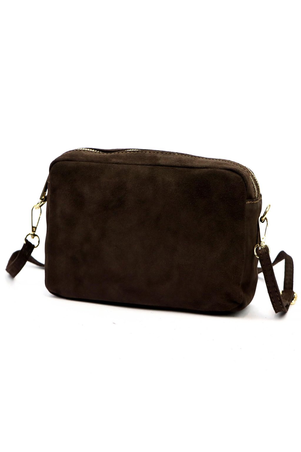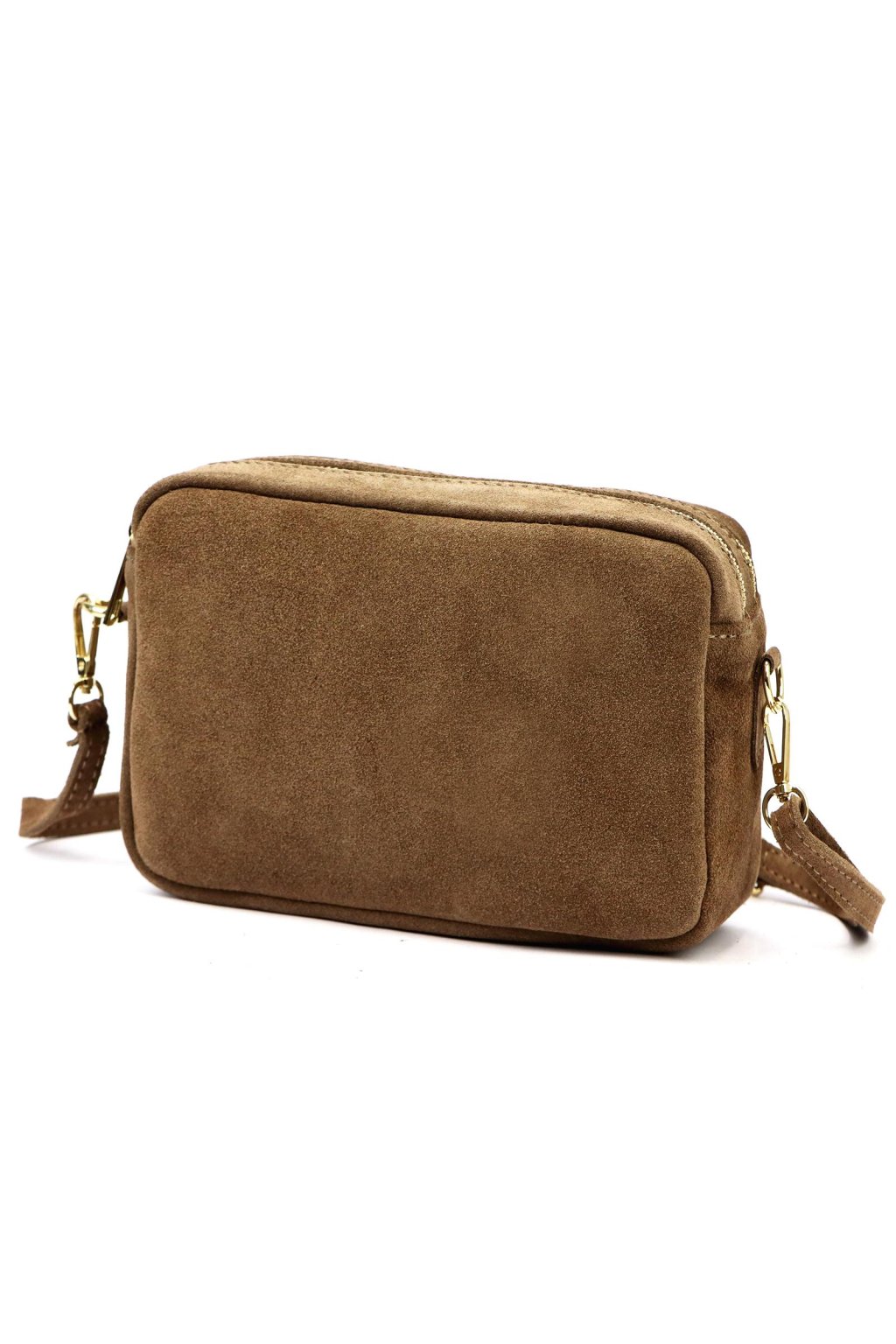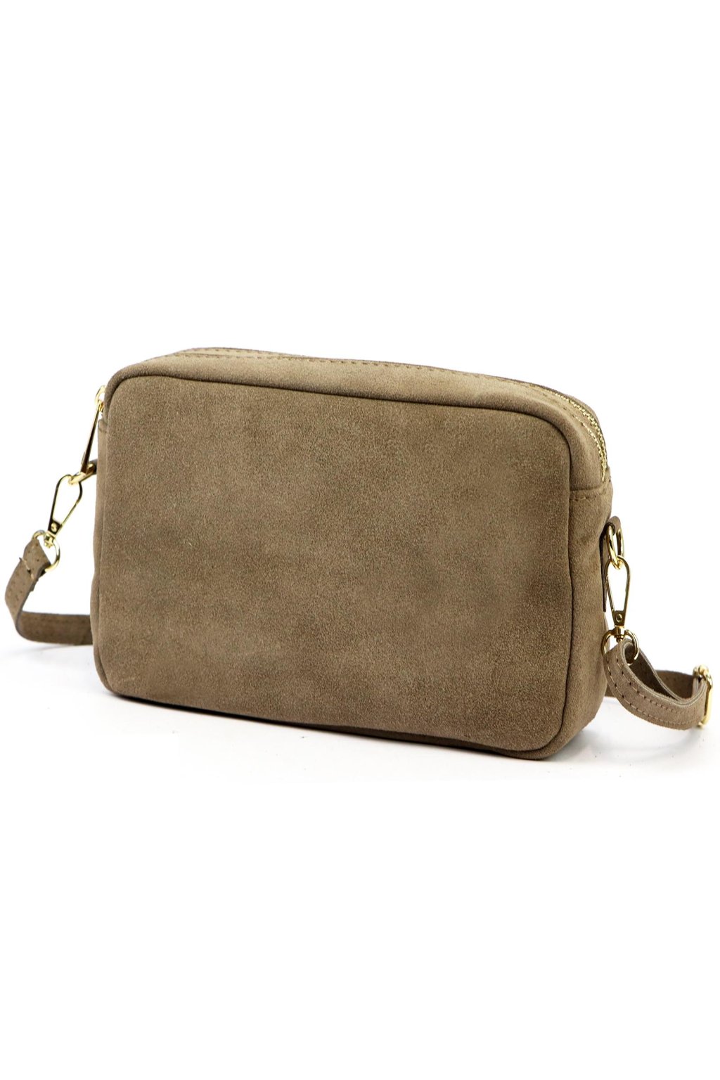 Minimalistická crossbody kabelka v obdélníkovém tvaru z broušené kůže. Čistý design bez zbytečných ozdob podtrhuje přírodní struktura materiálu. Kabelka má zipové zapínání a odnímatelný nastavitelný popruh, což umožňuje pohodlné nošení.