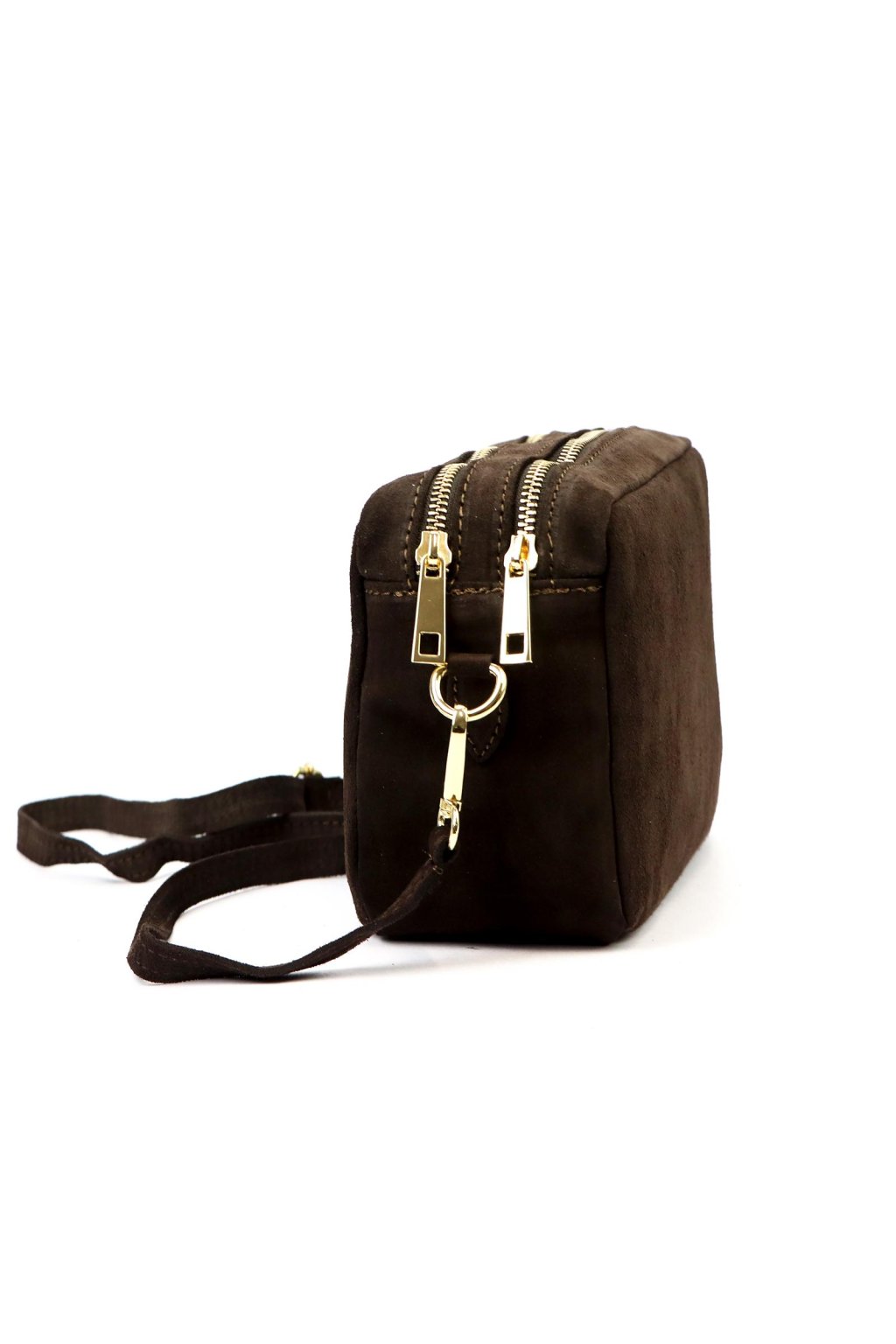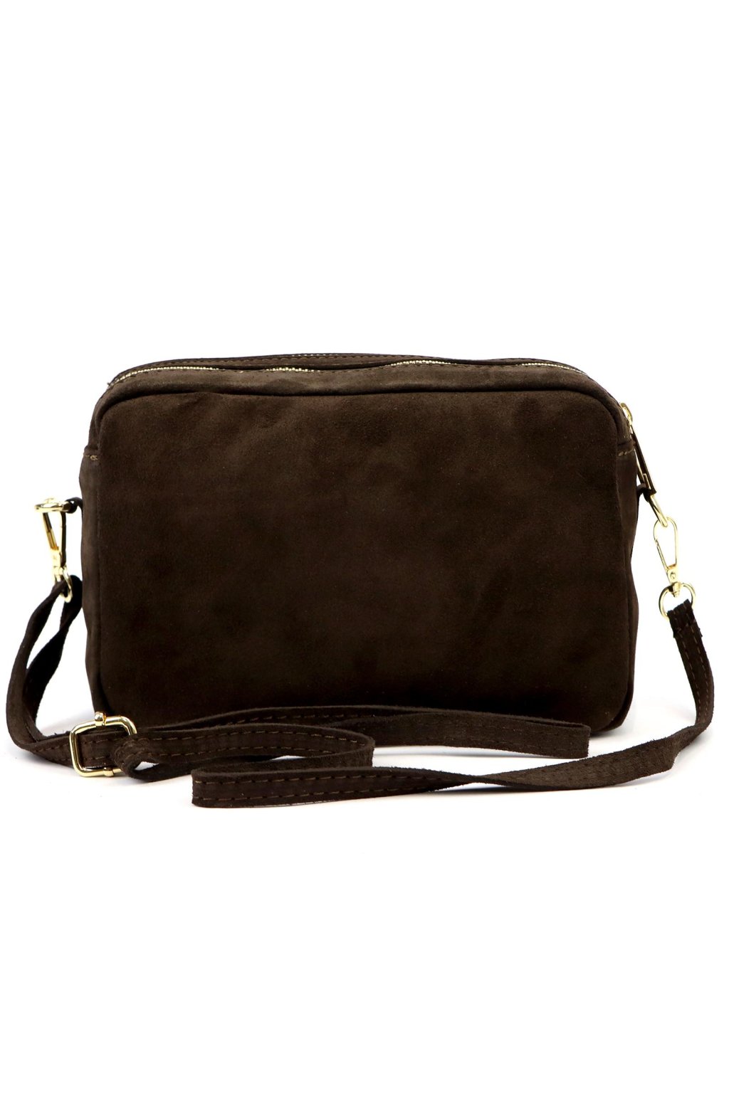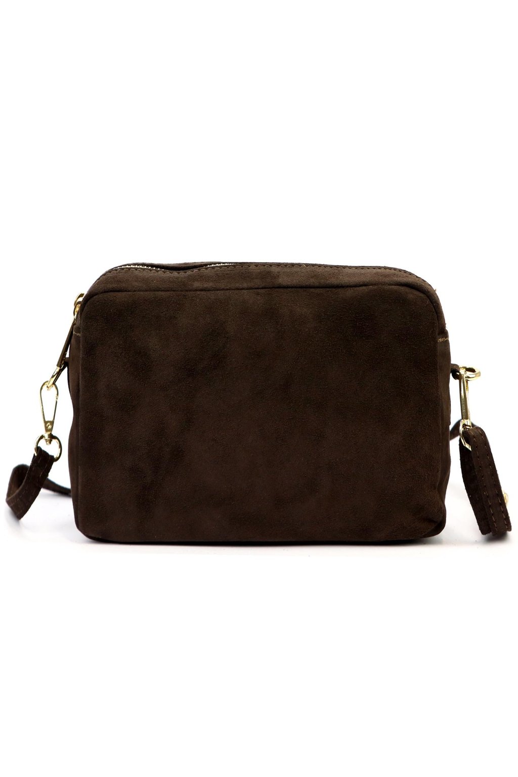 Minimalistická crossbody kabelka v obdélníkovém tvaru z broušené kůže. Čistý design bez zbytečných ozdob podtrhuje přírodní struktura materiálu. Kabelka má zipové zapínání a odnímatelný nastavitelný popruh, což umožňuje pohodlné nošení.