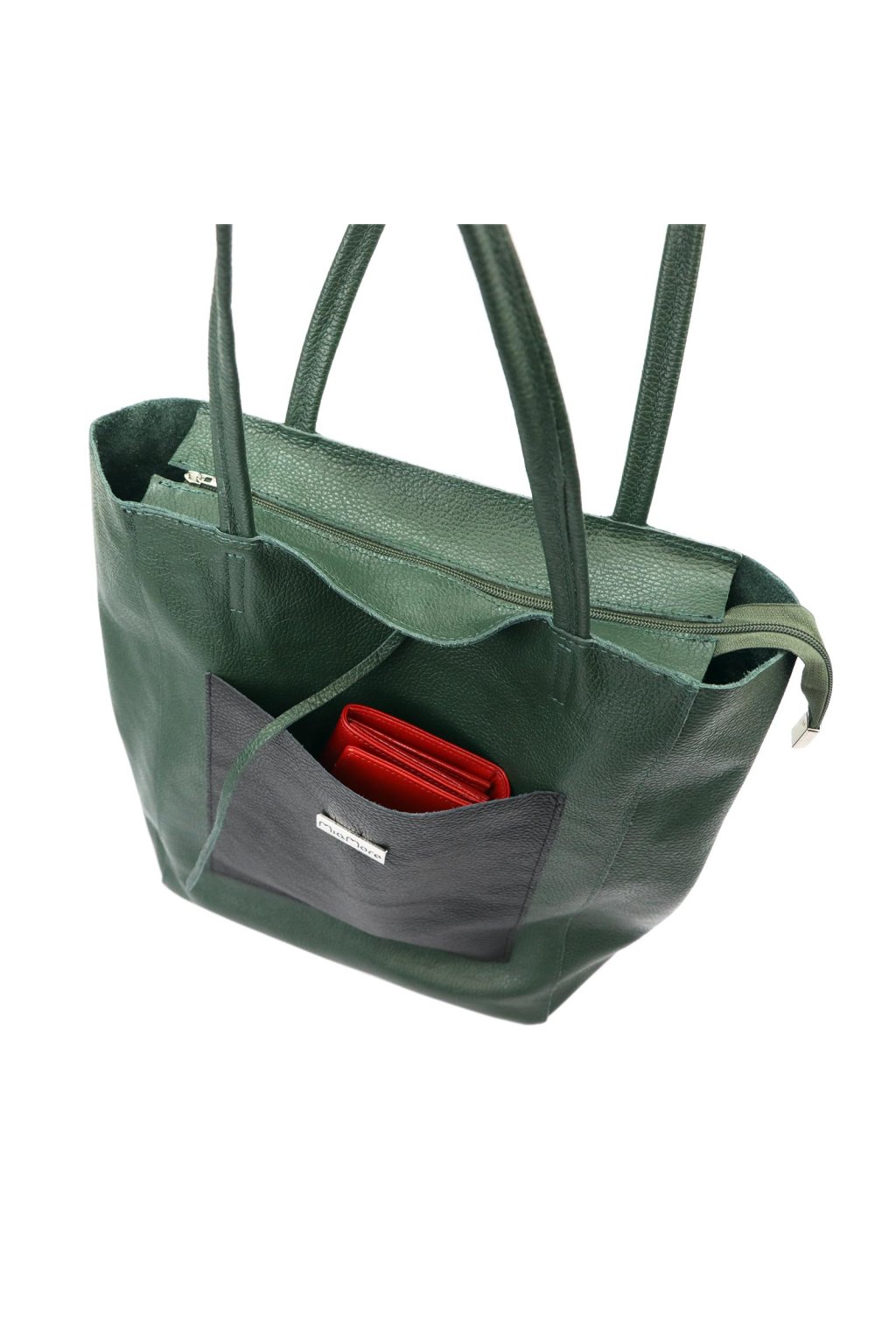 Stylová a nadčasová shopper kabelka z měkké přírodní lícové kůže, která nabízí ideální spojení elegance a praktičnosti. Jednokomorové provedení je vybaveno vnitřní kapsičkou na zip a uzavírá se kombinací zipu a dekorativního koženého zavazování. Na přední straně se nachází velká našitá kapsa, která dodává kabelce výraz i funkční úložný prostor. Díky delším uchům ji lze pohodlně nosit přes rameno, ideální na běžné denní nošení i nákupy.