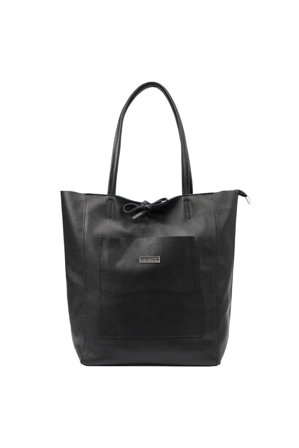 kožená kabelka – shopper kabelka – kabelka přes rameno – kabelka s kapsou – kabelka se zavazováním – lícová kůže – měkká kůže – elegantní taška – každodenní kabelka – velká kapsa vpředu – praktická kabelka – jednokomorová taška – kabelka na zip