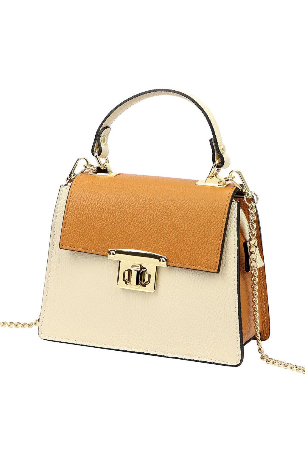 Tato elegantní menší kabelka z přírodní, měkké italské kůže licového typu je ideálním doplňkem pro ženy, které hledají klasiku v moderním pojetí. Díky pevné konstrukci ve stylu kuferku působí uhlazeně a luxusně. Jednokomorové provedení je doplněné kvalitní podšívkou a vnitřní kapsičkou na drobnosti. Kabelku uzavírá bezpečný zip a klopa s otočným kovovým zapínáním. Lze ji nosit jak v ruce nebo v ohbí lokte, tak i přes rameno díky přiloženému řetízkovému popruhu. Hodí se jak k elegantnímu outfitu, tak jako výrazný doplněk k večerním šatům.