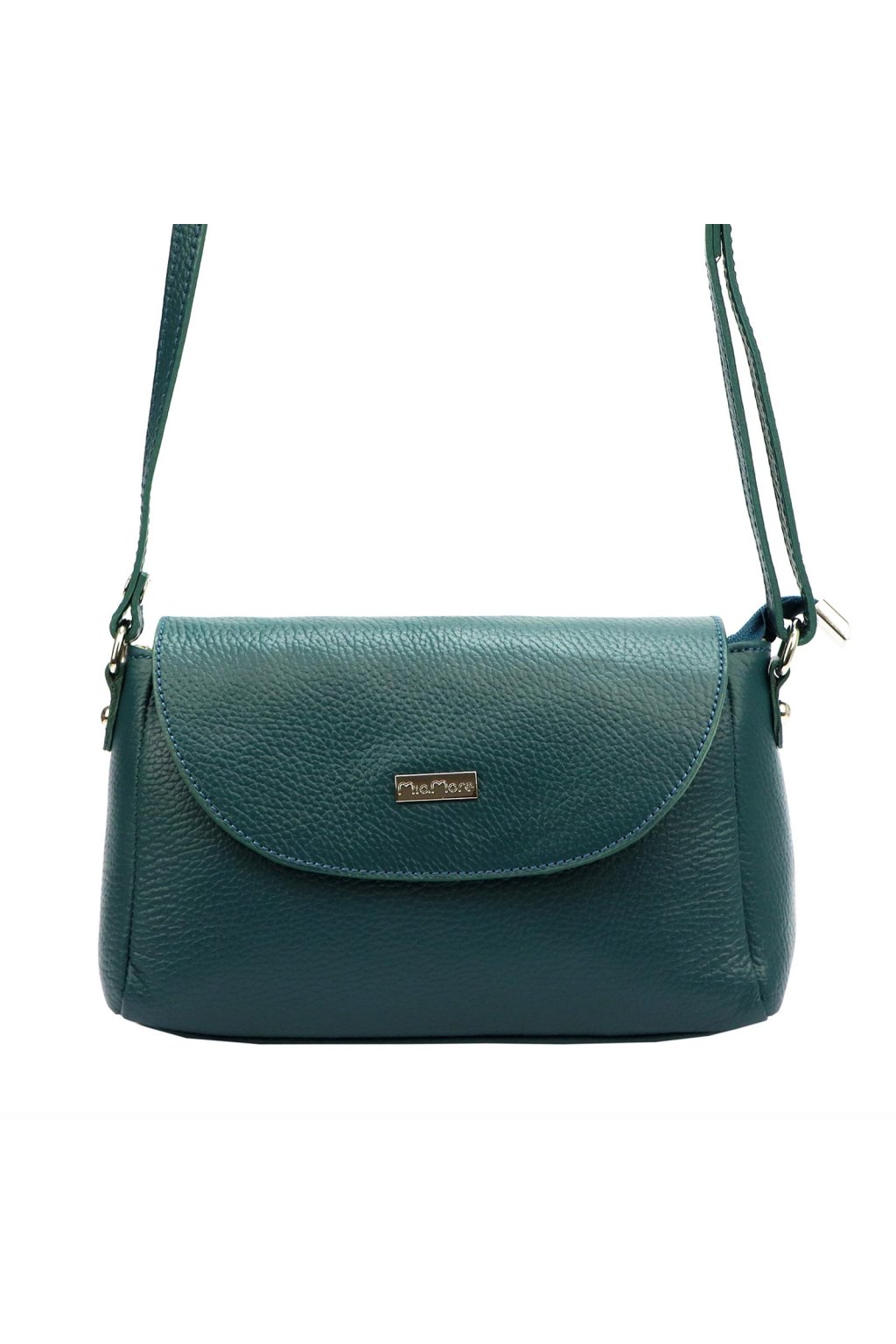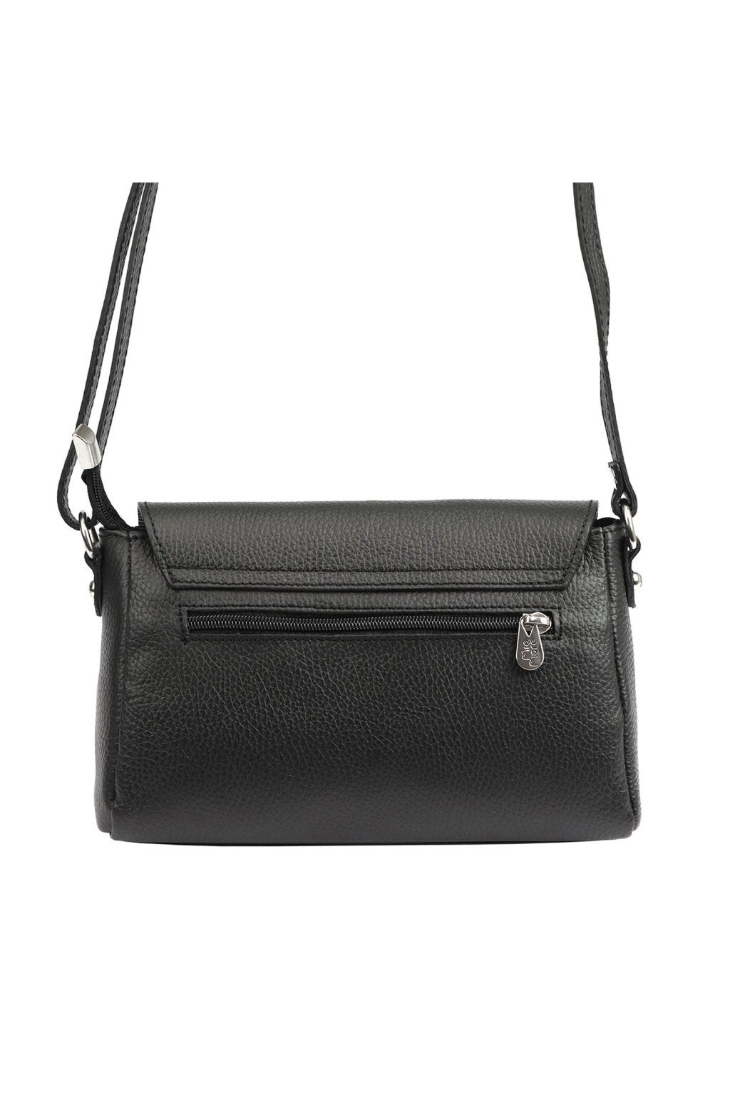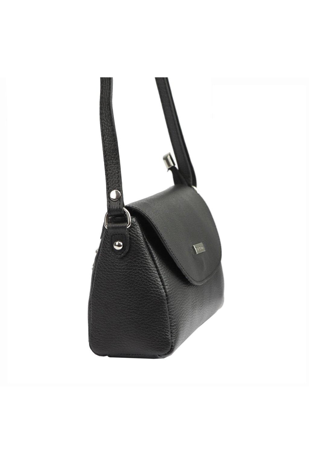 Malá elegantní kabelka určená k nošení na rameni nebo křížem přes tělo. Vyrobena z vysoce kvalitní italské hovězí kůže s výraznou zrnitou texturou. Uvnitř se nachází hlavní komora, podšitá odolnou podšívkou a doplněná o praktickou kapsu na drobnosti uzavíratelnou na zip. Na zadní straně kabelky je další kapsa na zip. Hlavní prostor je chráněn zipem a klopou se zapínáním na magnet.