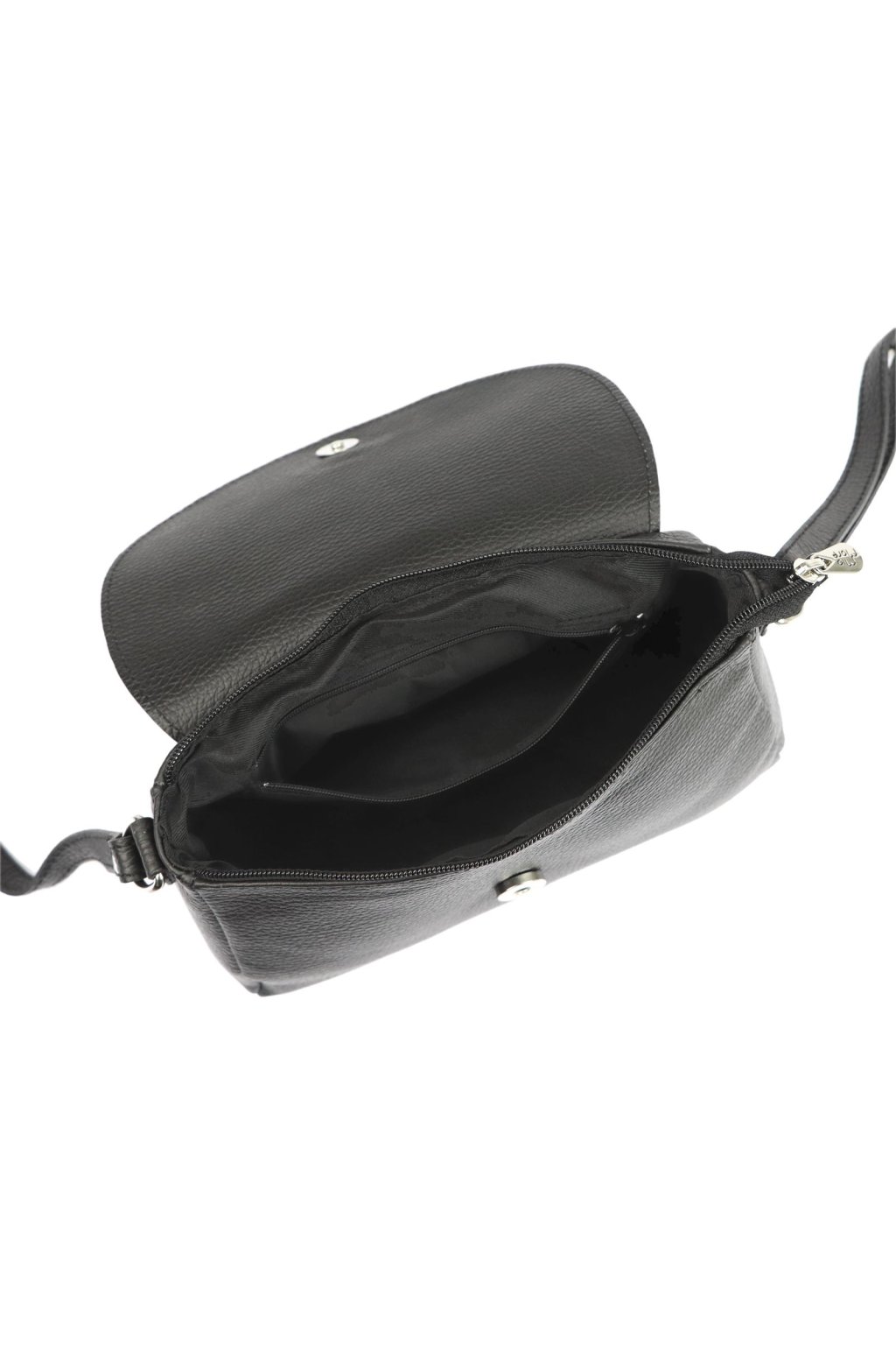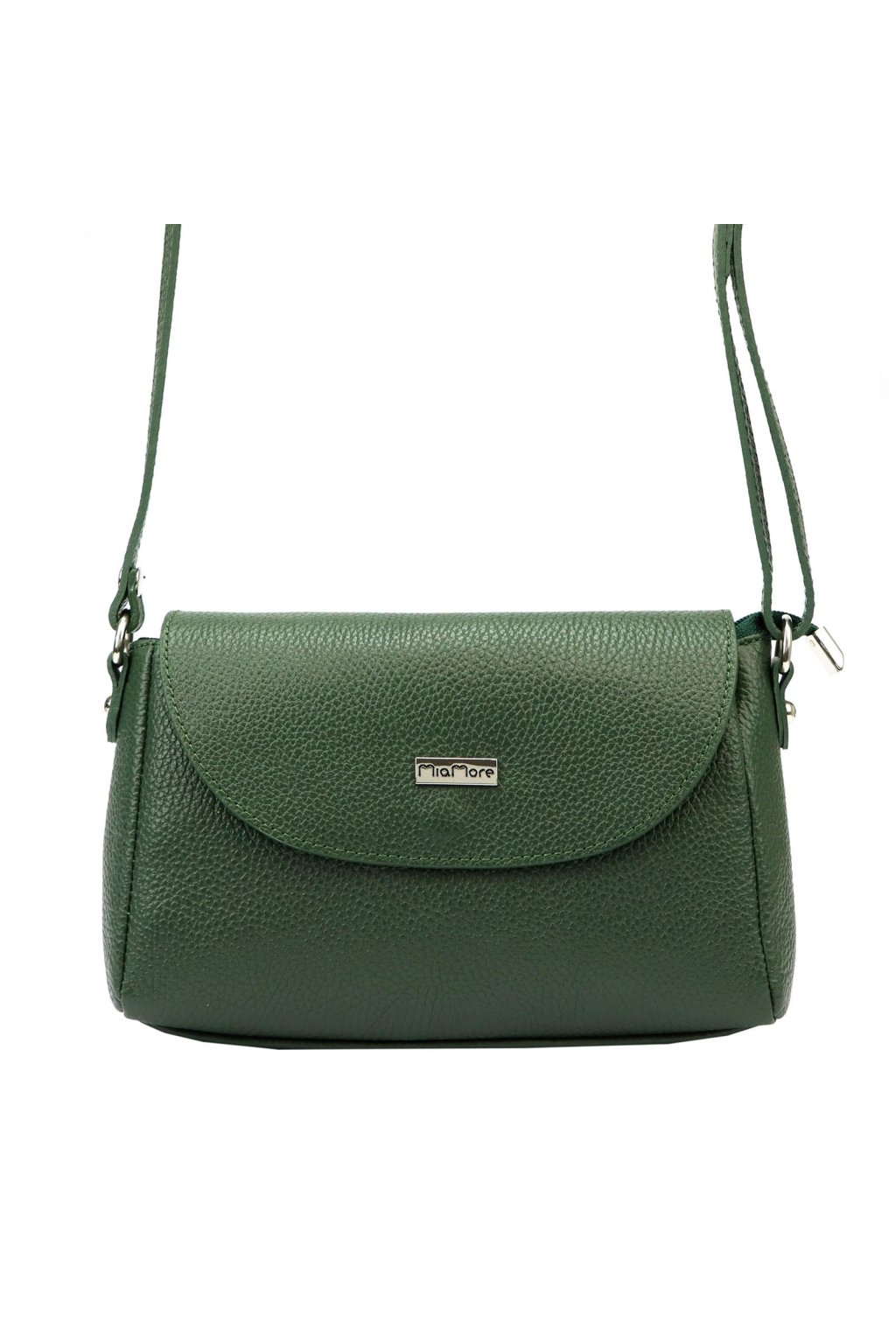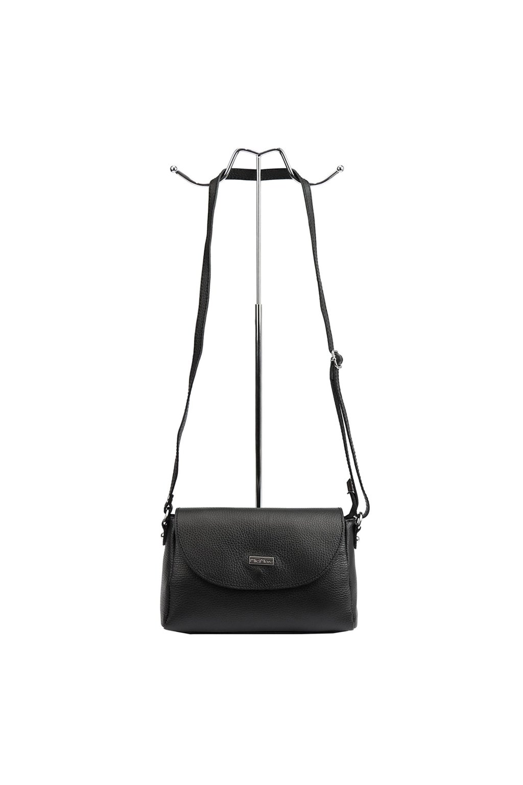 Malá elegantní kabelka určená k nošení na rameni nebo křížem přes tělo. Vyrobena z vysoce kvalitní italské hovězí kůže s výraznou zrnitou texturou. Uvnitř se nachází hlavní komora, podšitá odolnou podšívkou a doplněná o praktickou kapsu na drobnosti uzavíratelnou na zip. Na zadní straně kabelky je další kapsa na zip. Hlavní prostor je chráněn zipem a klopou se zapínáním na magnet.