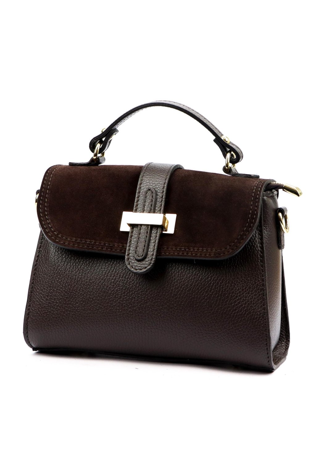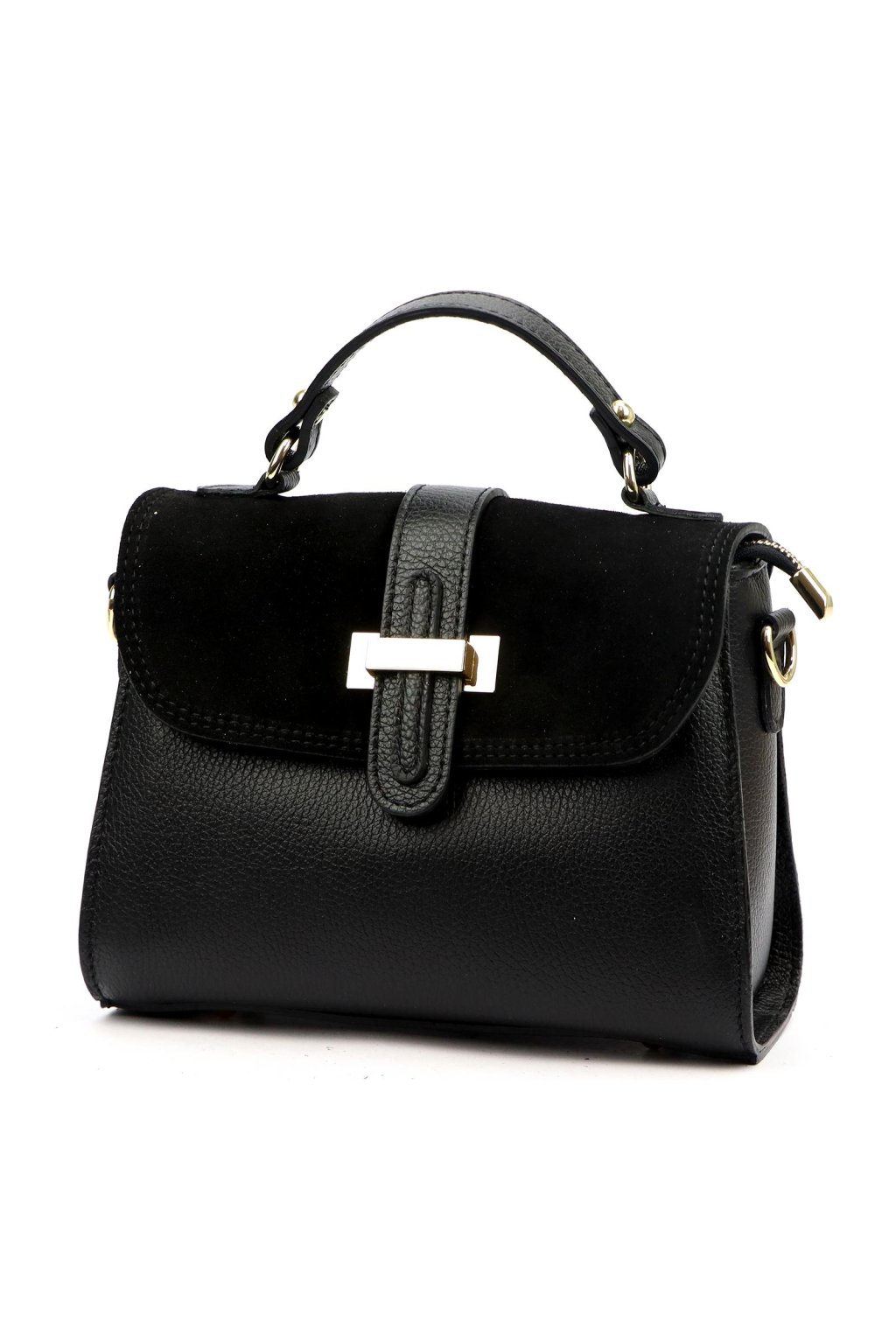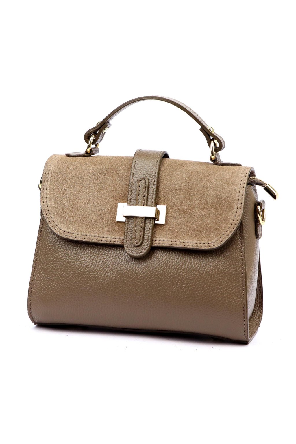 dámská kožená kabelka, kabelka s krátkým uchem, elegantní kabelka s klopou, kabelka se zlatou sponou, kabelka z broušené kůže, luxusní kožená kabelka na rameno