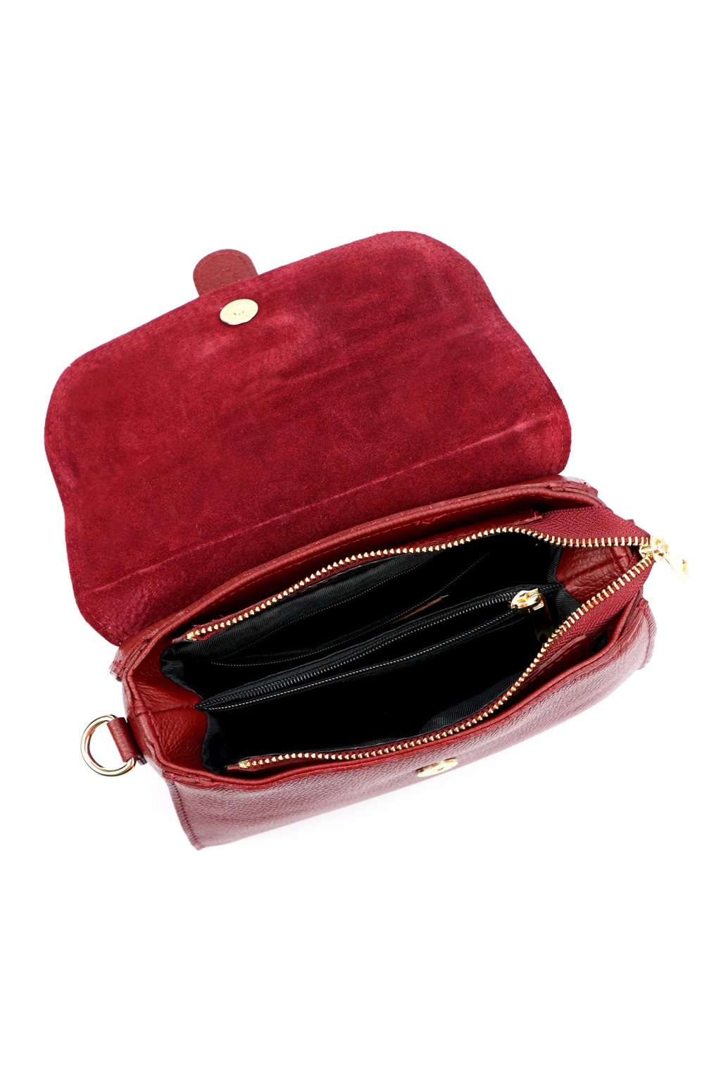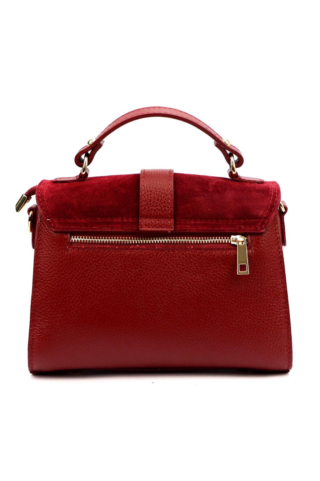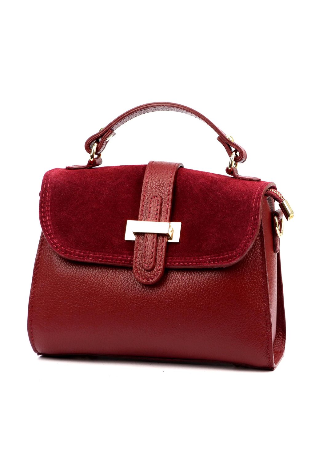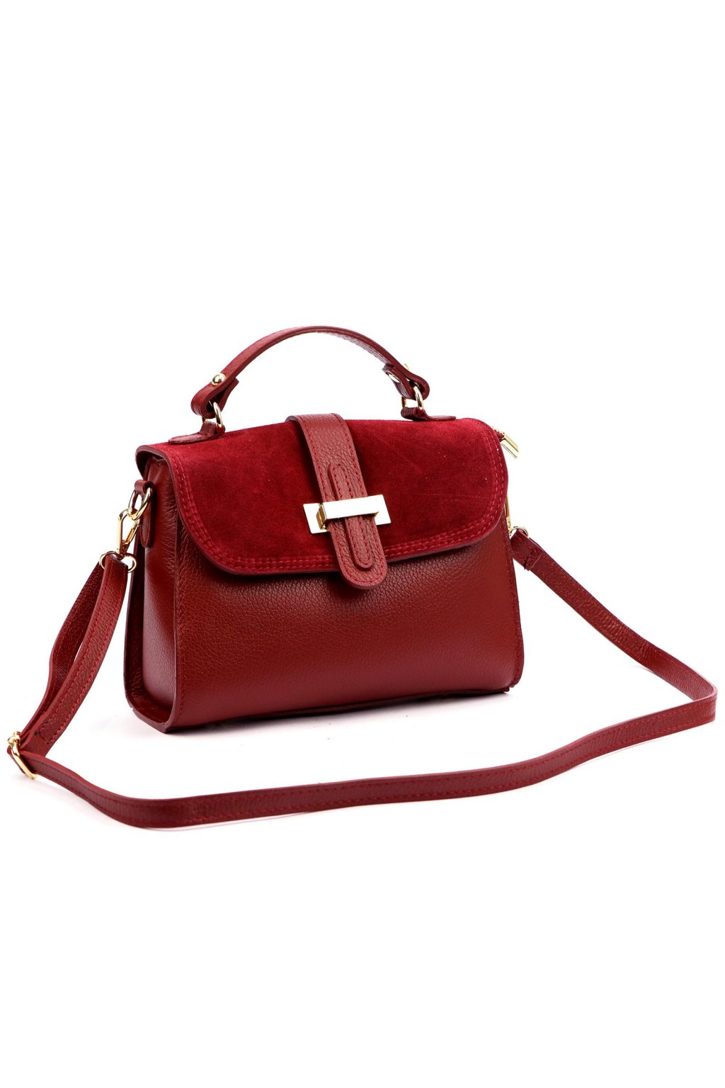 Elegantní dámská kabelka z kvalitní přírodní kůže v kombinaci s broušenou kůží. Výrazný odstín podtrhuje luxusní charakter, zatímco klopa se zlatou sponou dodává kabelce sofistikovaný vzhled. Díky krátkému uchu ji můžete nosit v ruce, odnímatelný popruh umožňuje i pohodlné nošení přes rameno.