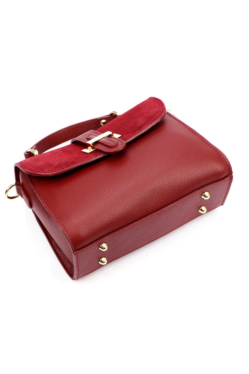 Kožená kabelka s krátkým uchem a zlatou sponou