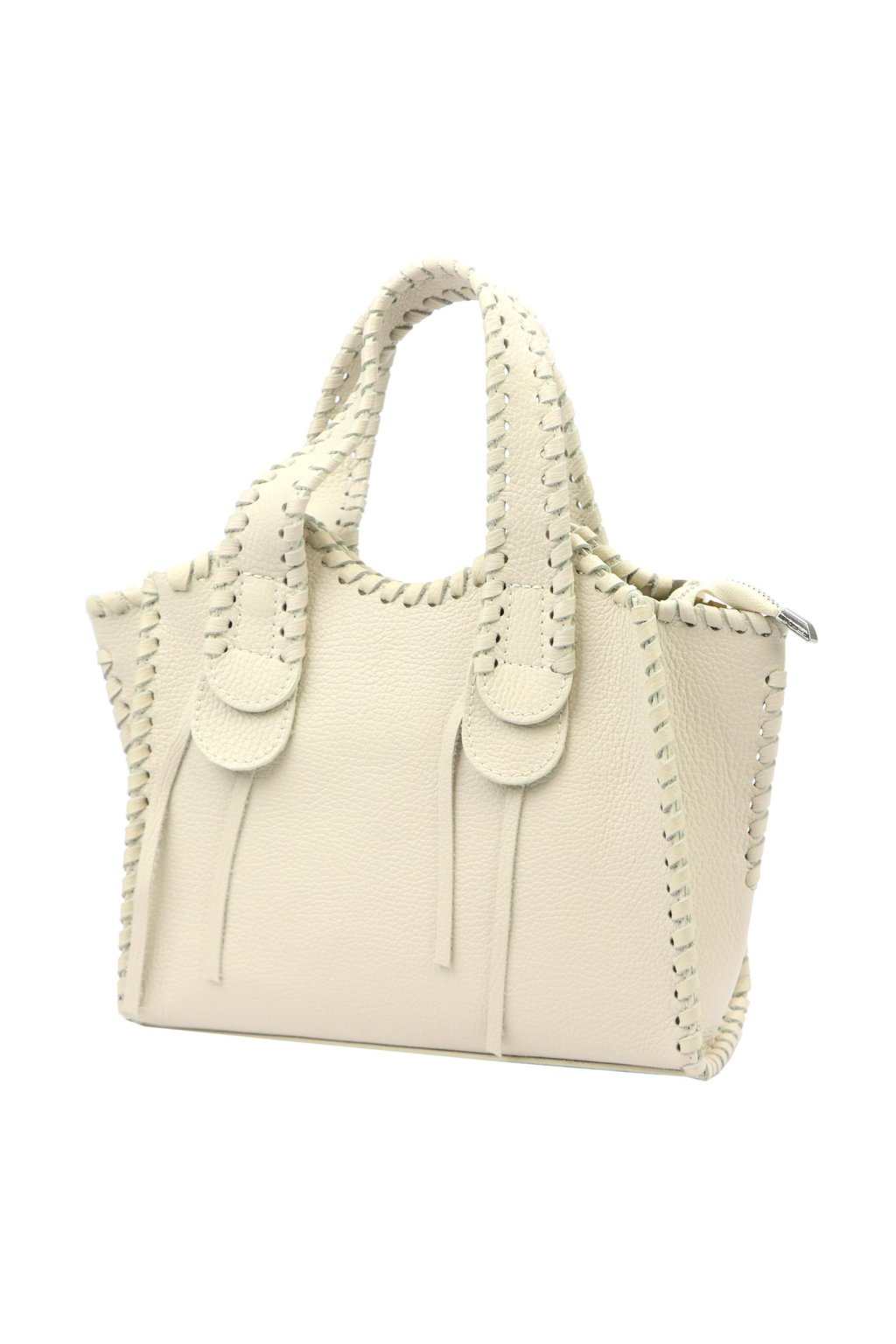 kožená kabelka do ruky – kabelka s ozdobným šitím – pevná kabelka – elegantní dámská taška – ručně šitá kůže – italská kvalita – béžová shopperka – přírodní kůže – výrazný doplněk