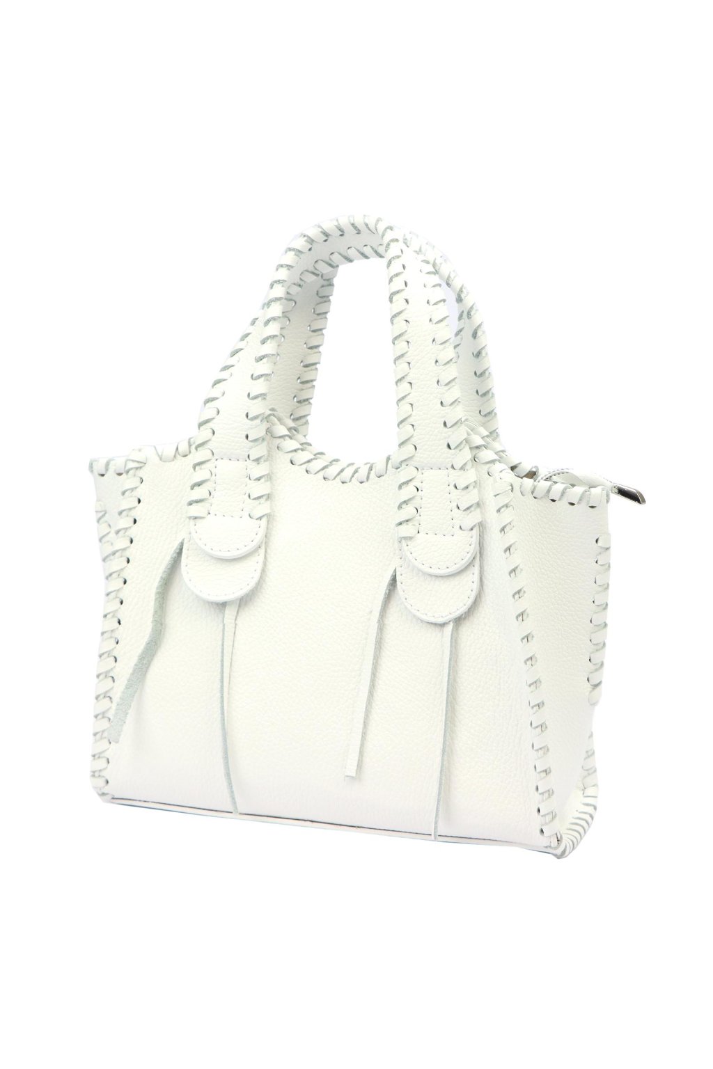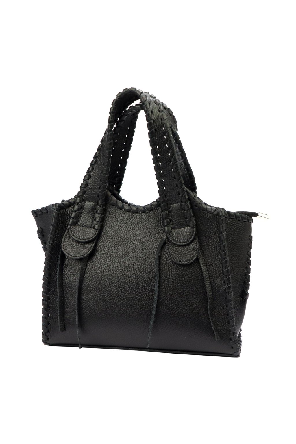 Originální kabelka z přírodní kůže s výrazným ručním prošitím po okrajích a na uších zaujme svým pevným tvarem a neotřelým designem. Díky kratším uchům ji můžete pohodlně nosit v ruce nebo v ohbí paže. Vnitřní prostor je zajištěn podšívkou a zipem, kabelka tak spojuje praktičnost s výrazným vzhledem. Ideální pro ženy, které hledají originální kousek s osobitým stylem.