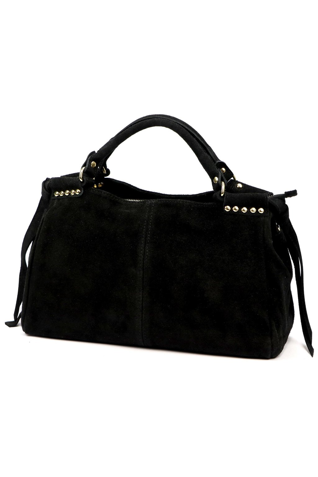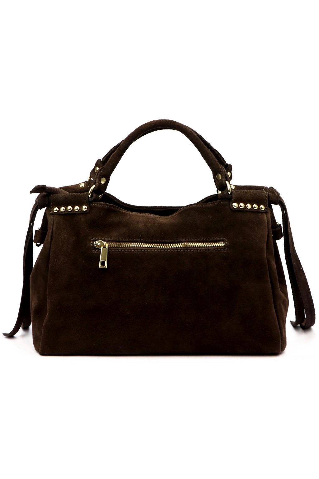Elegantní kabelka v moderním designu z měkkého semiše kombinuje styl, funkčnost a pohodlí. Je ozdobena decentními zlatými kovovými prvky a střapci, které jí dodávají originální charakter.