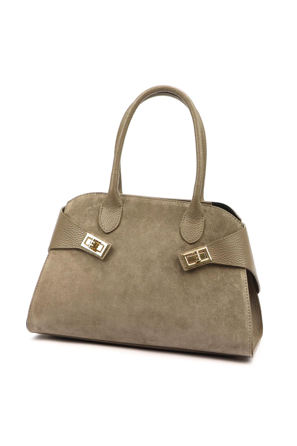 Tato elegantní kabelka z pravé kůže kombinuje matný broušený povrch s jemně zrnitou strukturou hladké kůže. Její precizní linie, pevný tvar a zlaté detaily vytvářejí dojem nadčasového luxusu. Ideální volba pro ženy, které chtějí působit elegantně, sebevědomě a zároveň zůstat věrné praktičnosti.