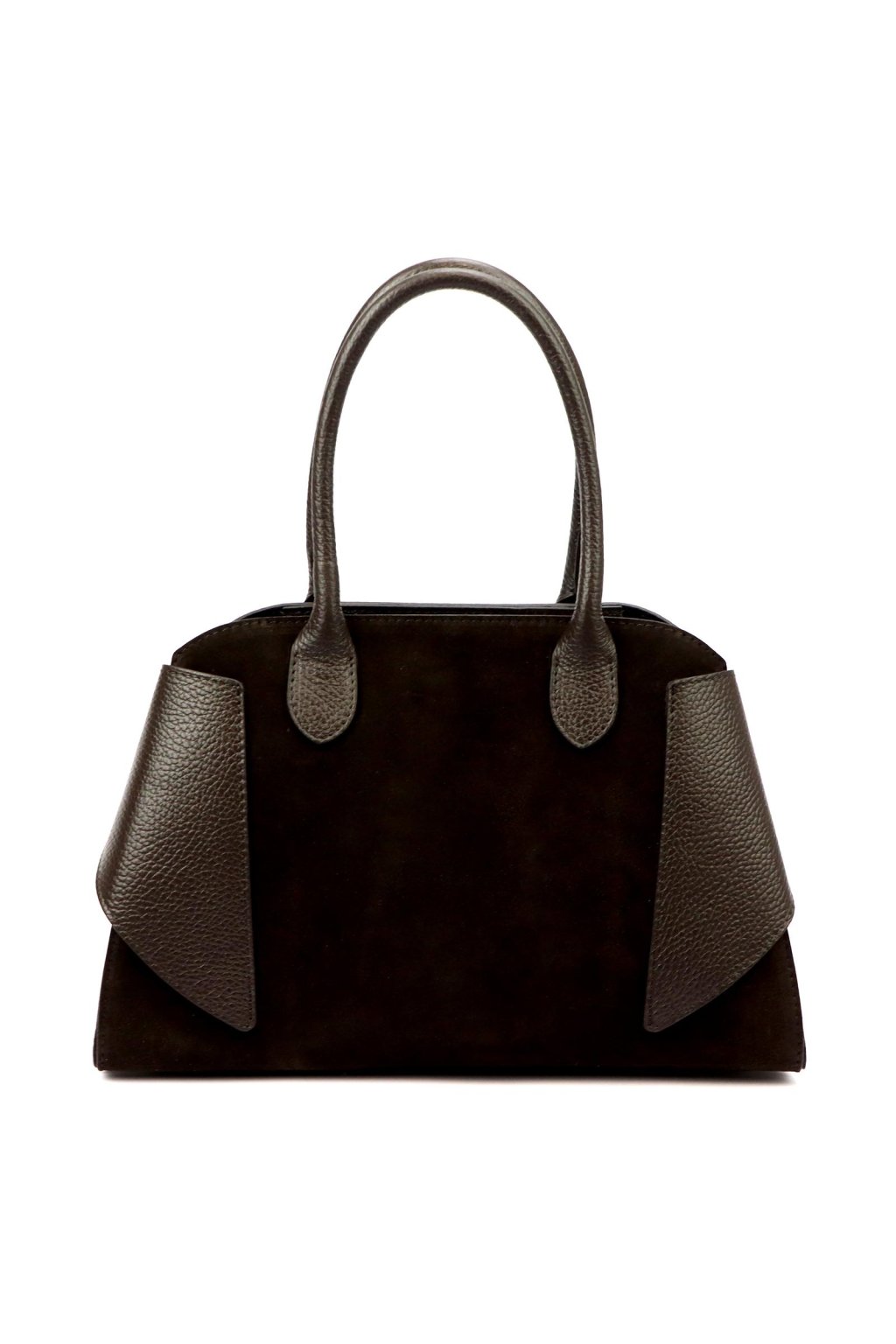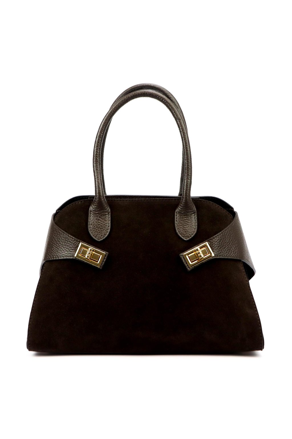 kožená kabelka s broušeným povrchem, elegantní kabelka do ruky, černá kabelka z pravé kůže, tmavě hnědá kabelka, luxusní kabelka se zlatými detaily, dámská kožená kabelka s popruhem.
