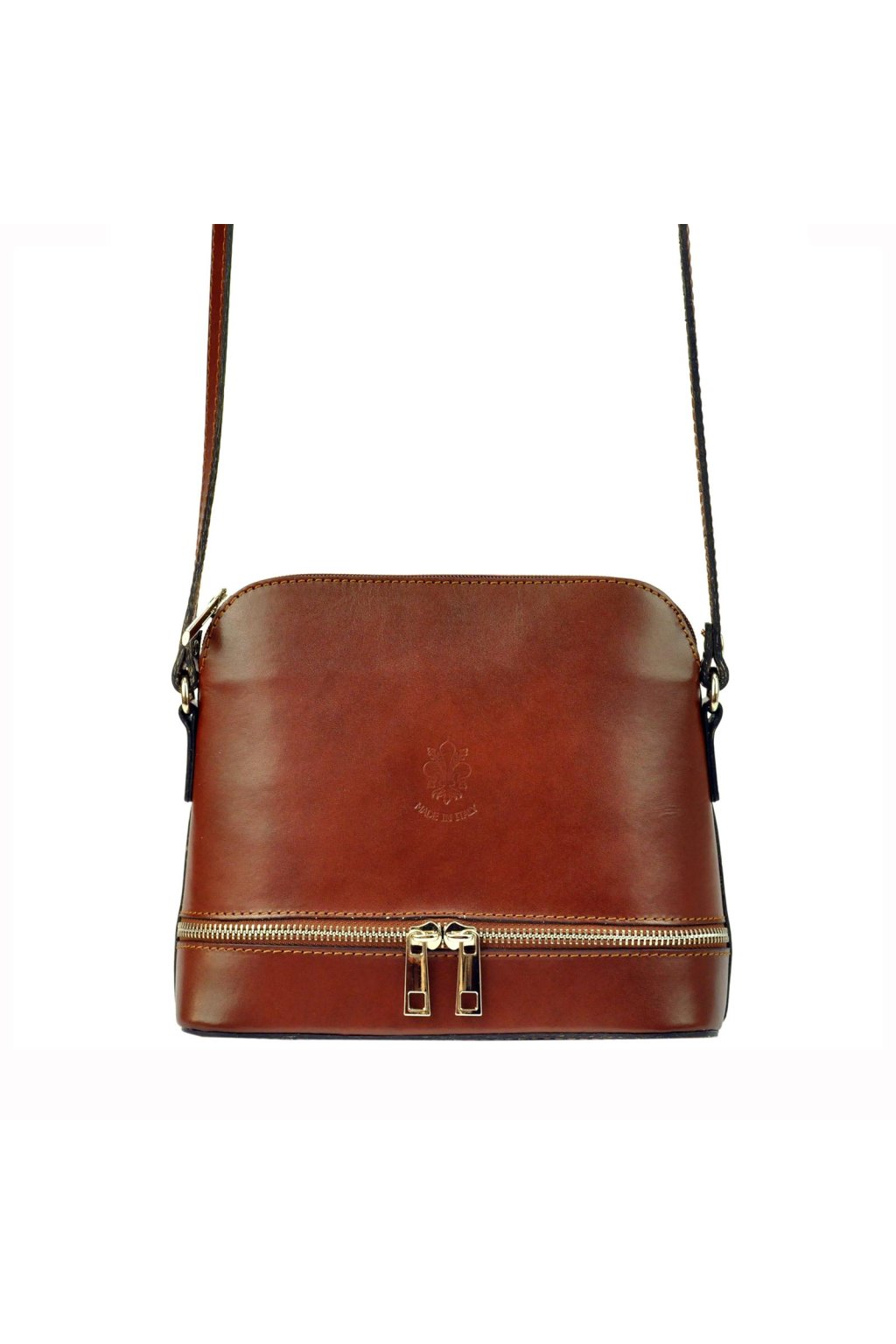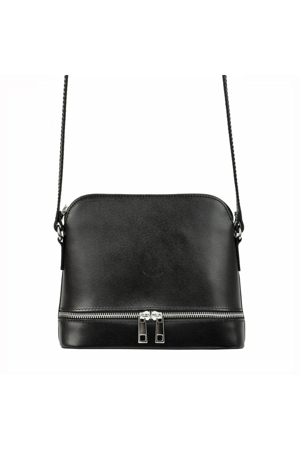 Tento elegantní model v kompaktním formátu je vyroben z kvalitní italské hovězí kůže a potěší každou ženu hledající kombinaci stylu a praktičnosti. Kabelka má pevnou, jednokomorovou konstrukci a je určená pro nošení na rameni nebo křížem přes tělo. Vnitřní prostor je podšitý odolnou textilií a vybaven kapsičkou na mobil a zipovou přihrádkou na drobnosti. Hlavní komora je uzavíratelná kovovým zipem. Zadní strana kabelky nabízí další kapsu se zapínáním na zip, ideální pro bezpečné uložení klíčů nebo dokladů.