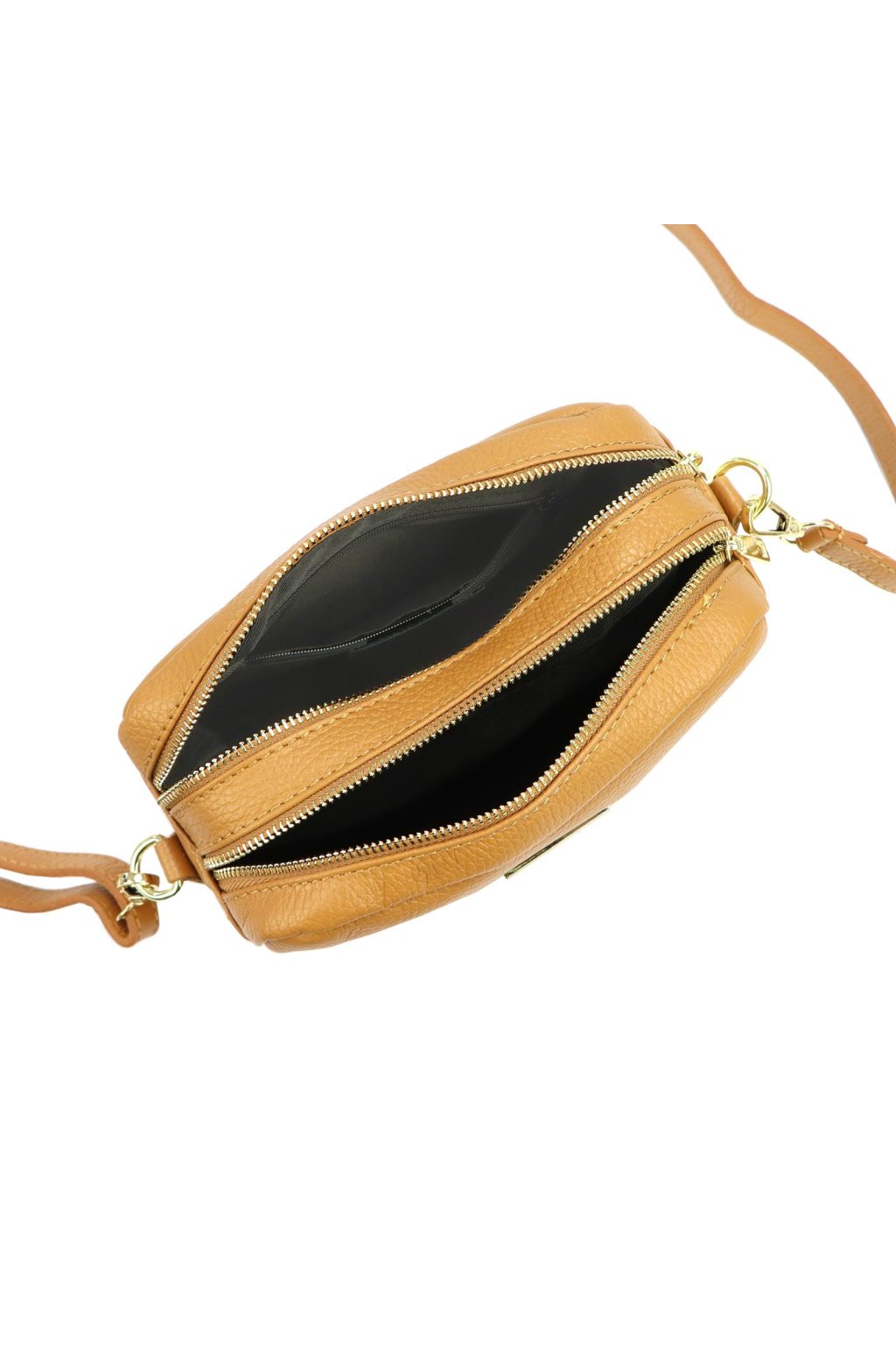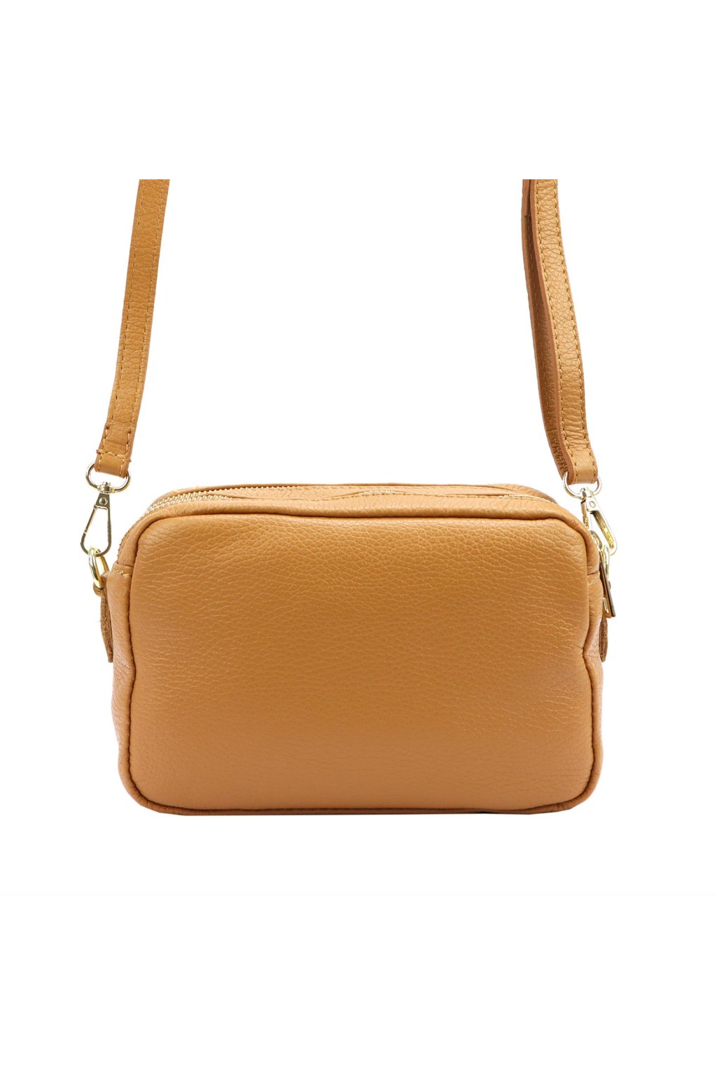 kožená kabelka – crossbody – dvě komory – praktický design – přírodní hovězí kůže – italská výroba – vnitřní kapsa na zip – odolná podšívka – pevné zipy – každodenní nošení