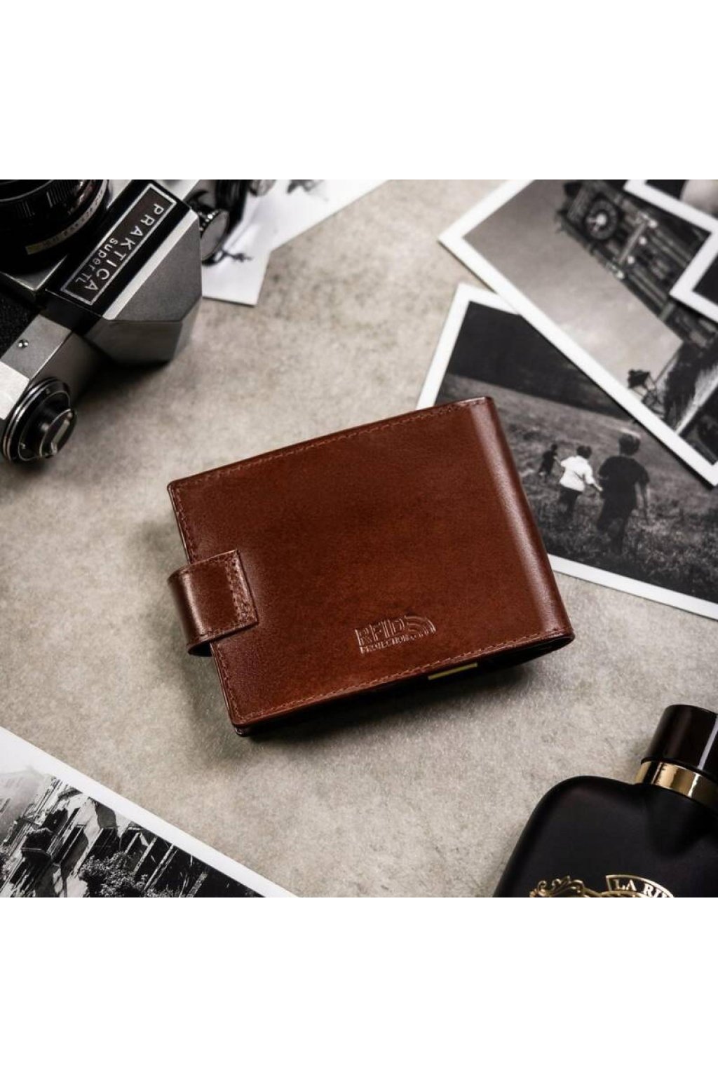 Elegantní kožená sada Peterson v hnědé barvě představuje ideální kombinaci praktičnosti a luxusu. Set obsahuje klasickou pánskou peněženku, dokladovku a klíčenku se zlatým logem značky. Minimalistický design doplněný o decentní kovové prvky působí nadčasově a stylově.