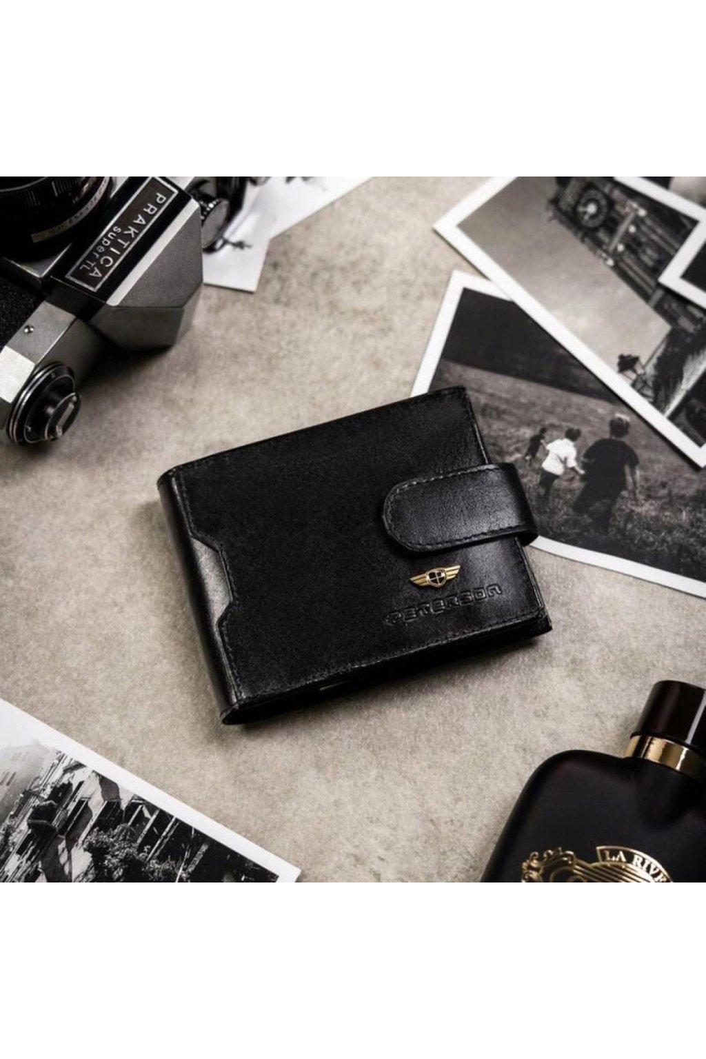 Elegantní kožená sada Peterson v černé barvě představuje ideální kombinaci praktičnosti a luxusu. Set obsahuje klasickou pánskou peněženku, dokladovku a klíčenku se zlatým logem značky. Minimalistický design doplněný o decentní kovové prvky působí nadčasově a stylově.