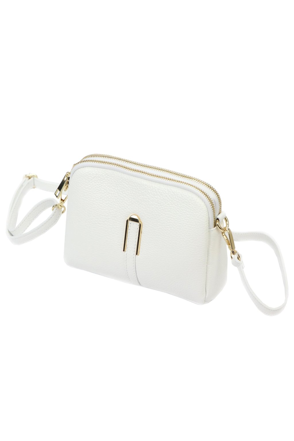 Kompaktní a elegantní kabelka z přírodní hladké kůže s jemným zrnem je skvělým společníkem na každý den. Má dvě oddělené komory, obě uzavíratelné zipem, což usnadňuje organizaci obsahu. Vnitřní uspořádání nabízí kapsu na zip a přihrádku na mobilní telefon. Dlouhý nastavitelný popruh umožňuje pohodlné nošení přes rameno i crossbody. Zdobná kovová aplikace na přední straně dodává kabelce decentní šmrnc. Tento model se hodí pro ženy, které ocení funkčnost, styl a kvalitní italské zpracování.