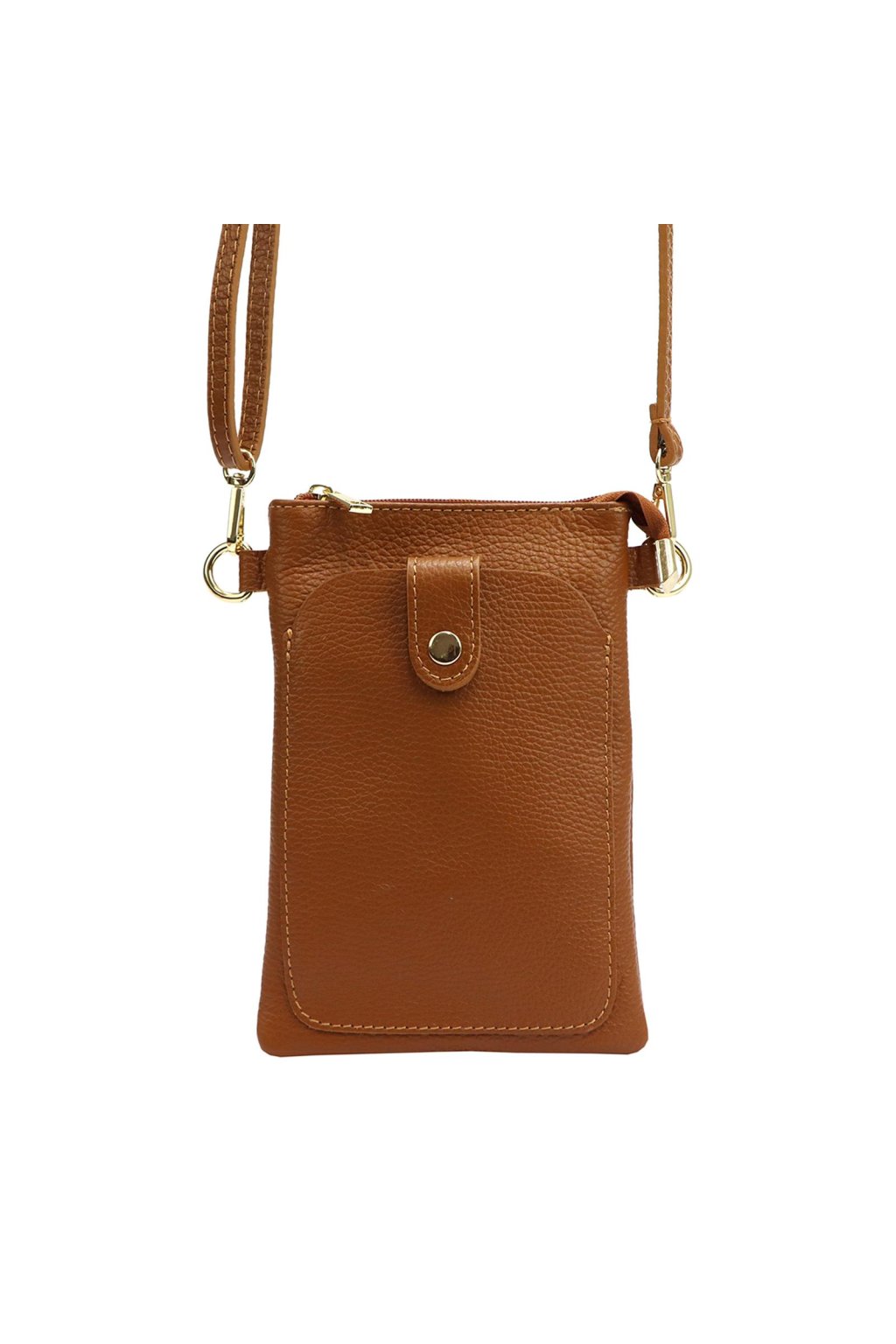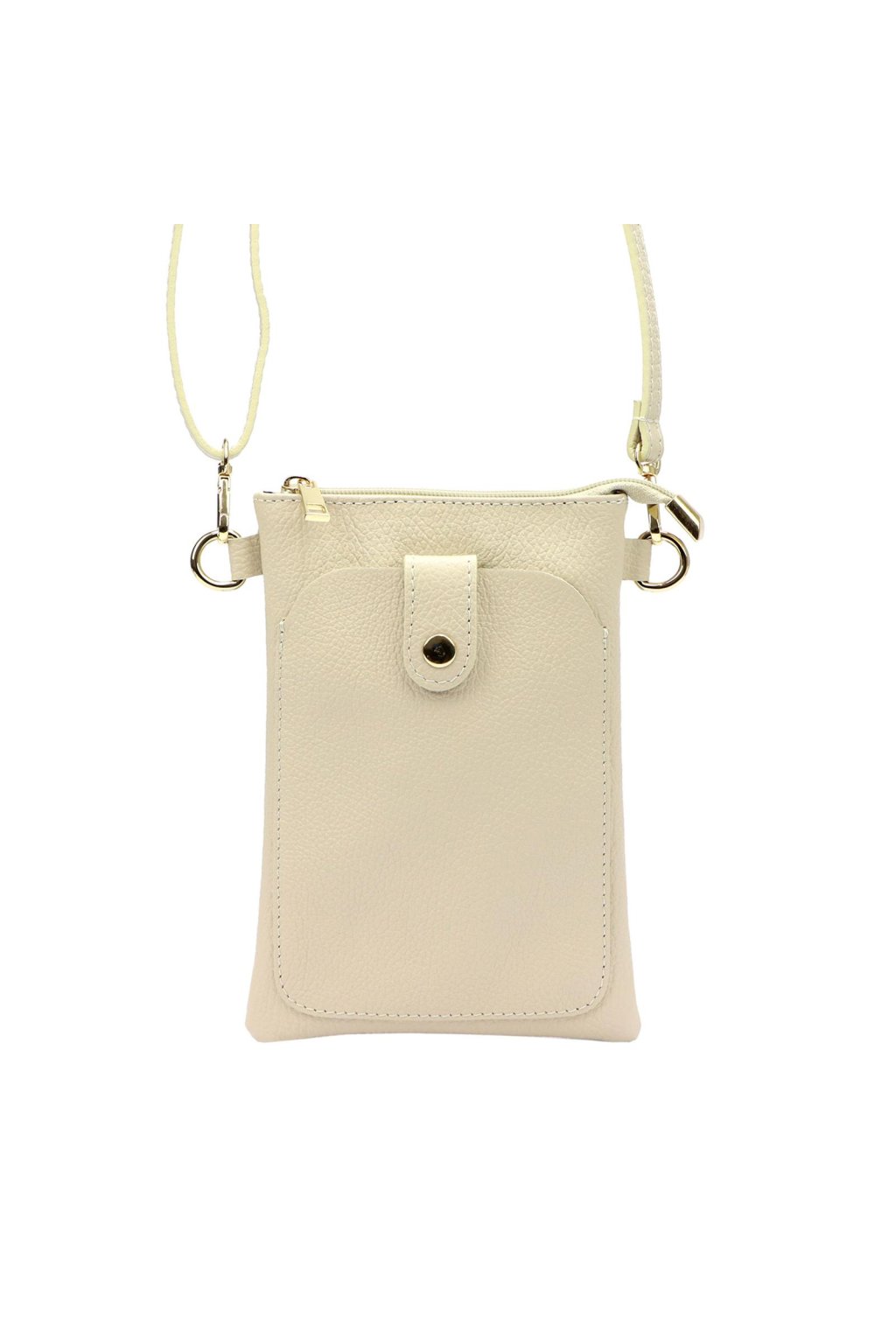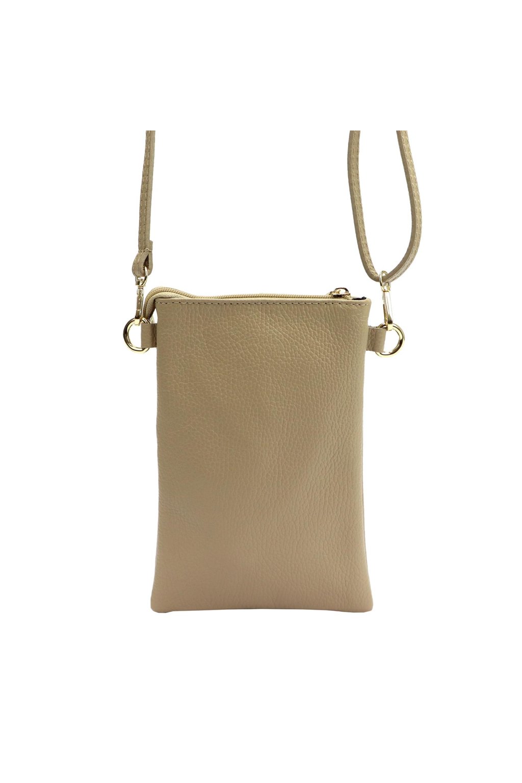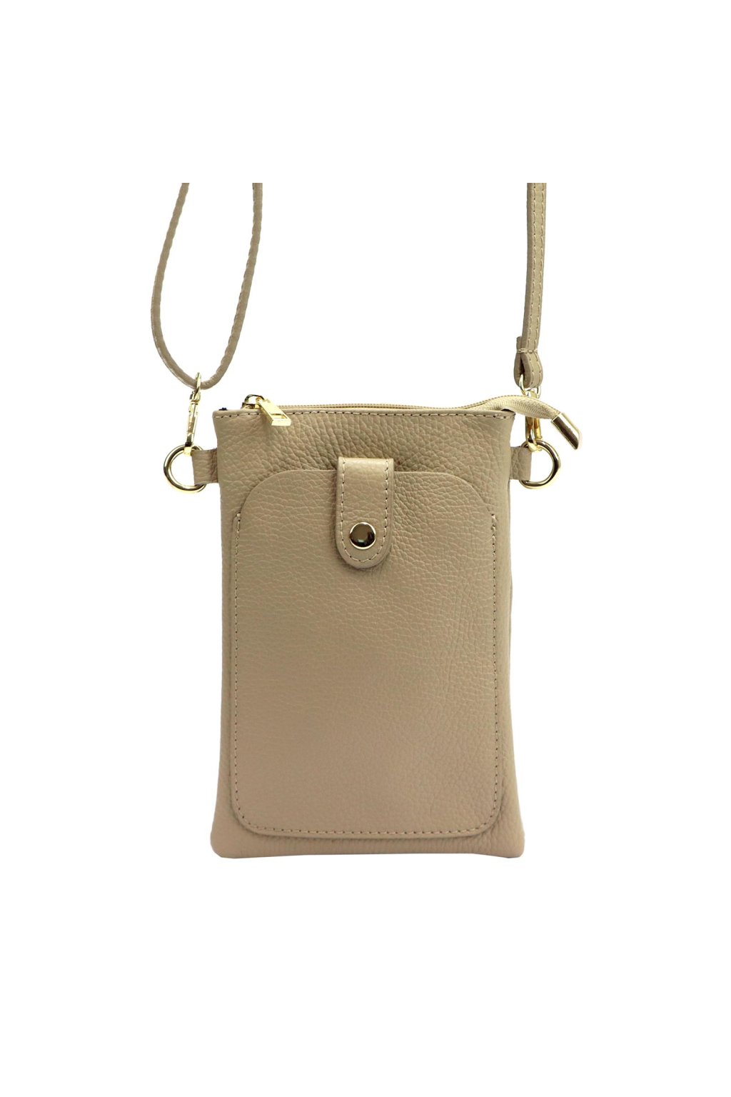 Velmi malá kabelka z nejkvalitnější přírodní italské lícové kůže ve formě praktického etue na mobilní telefon. Hlavní jednokomorový prostor se zapíná na pevný zip. Na přední straně je navíc kapsička s magnetickým drukem – ideální na drobnosti nebo karty. Dlouhý, odnímatelný pásek umožňuje pohodlné nošení přes rameno nebo jako crossbody.
