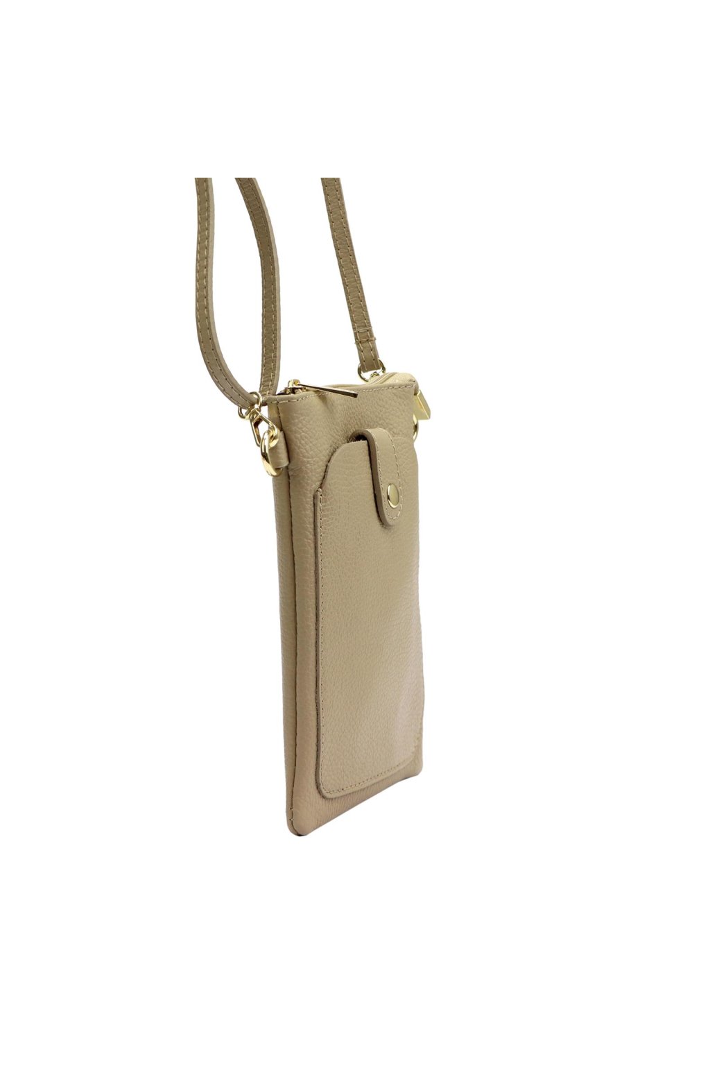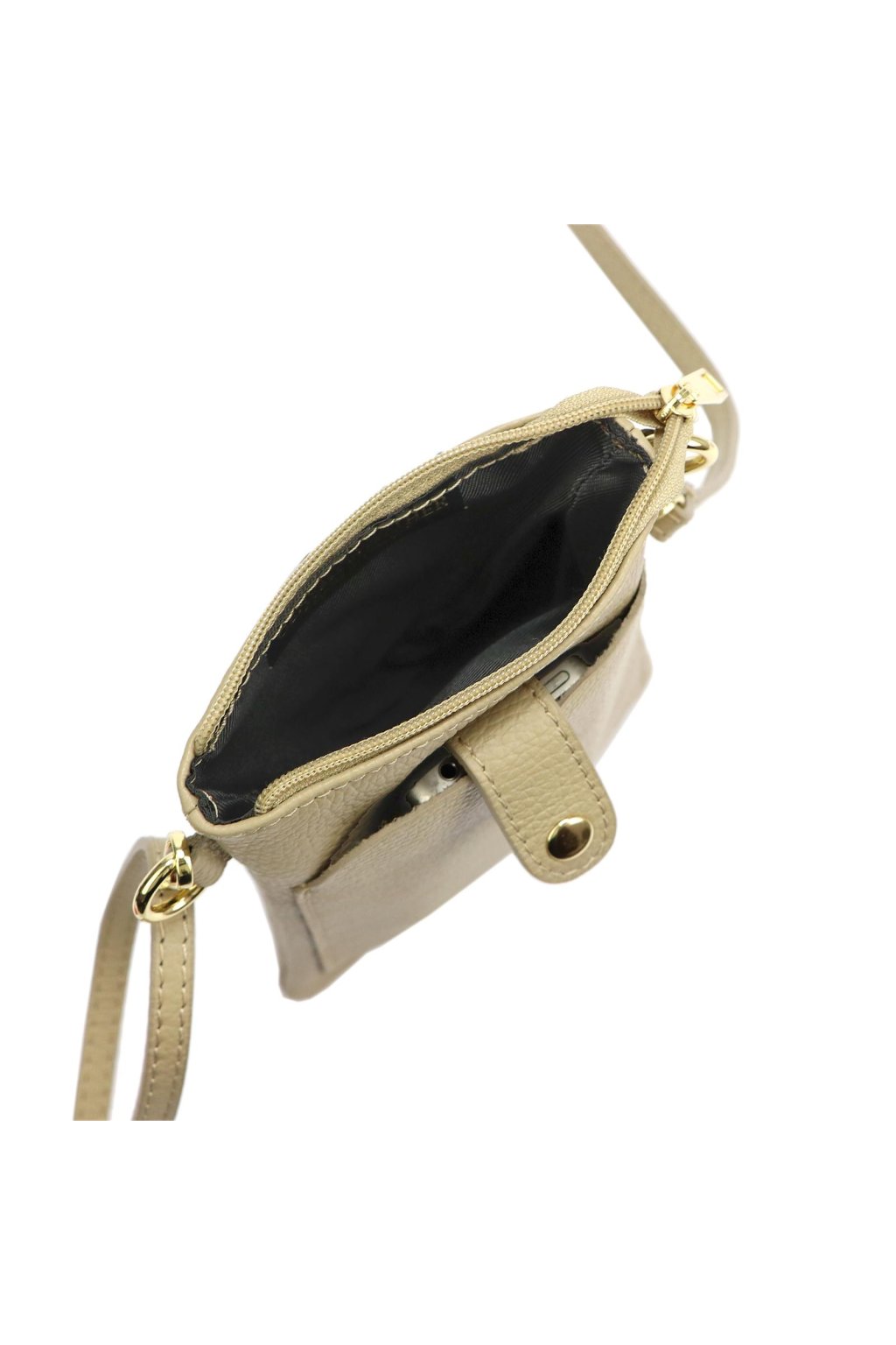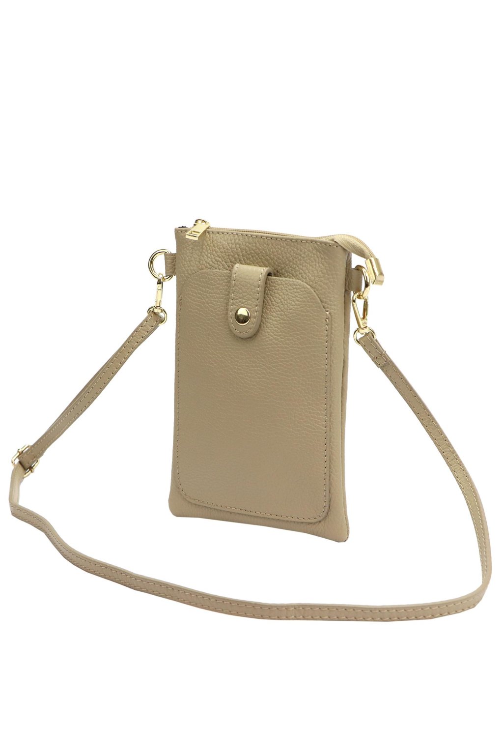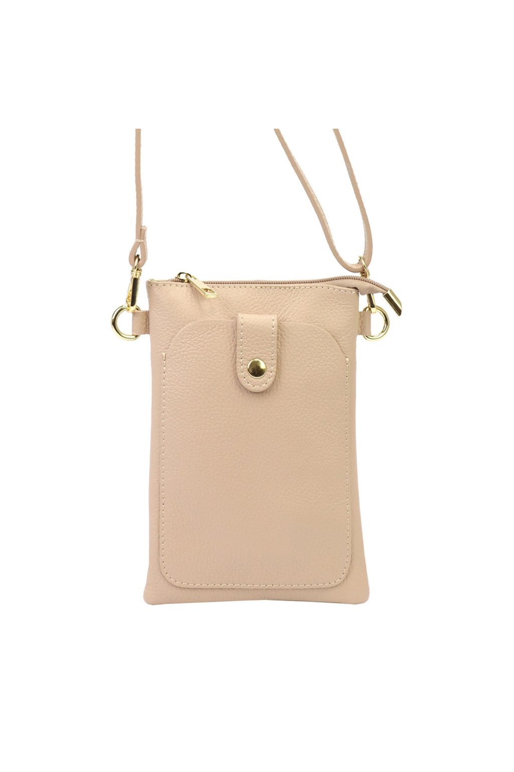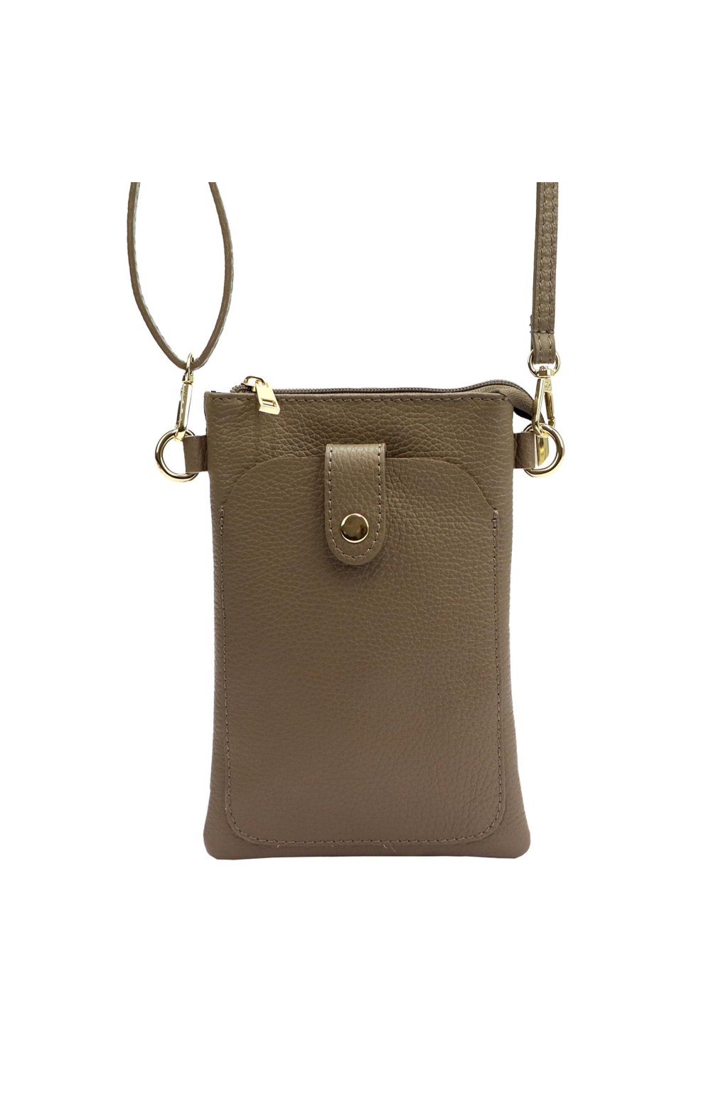 Velmi malá kabelka z nejkvalitnější přírodní italské lícové kůže ve formě praktického etue na mobilní telefon. Hlavní jednokomorový prostor se zapíná na pevný zip. Na přední straně je navíc kapsička s magnetickým drukem – ideální na drobnosti nebo karty. Dlouhý, odnímatelný pásek umožňuje pohodlné nošení přes rameno nebo jako crossbody.