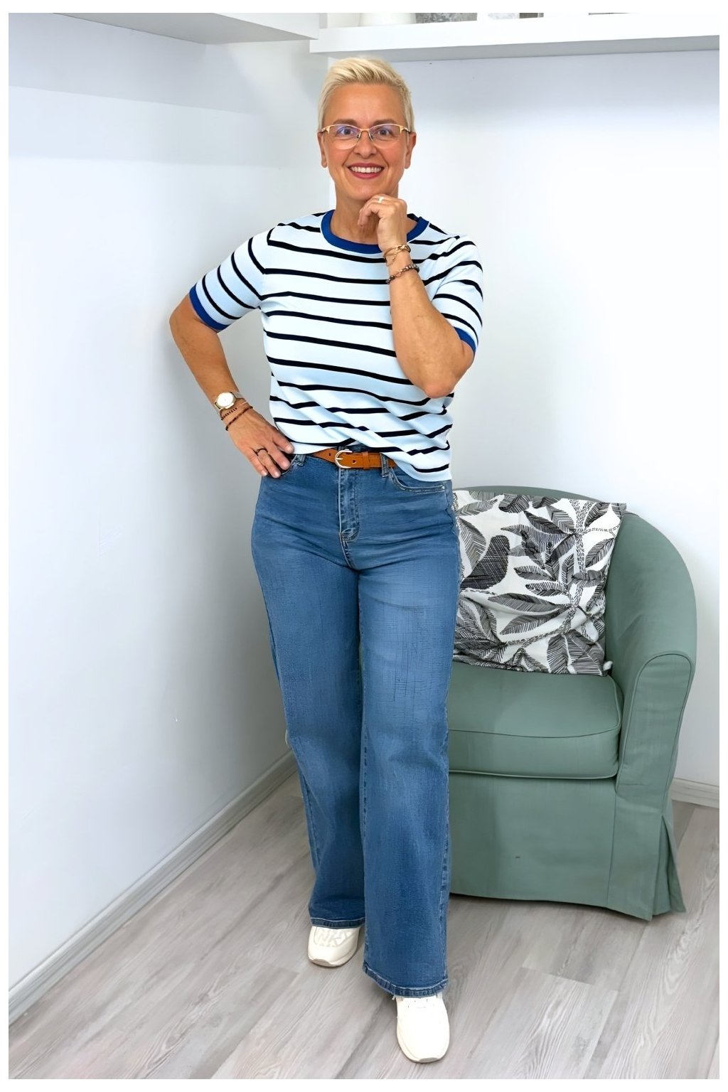– S proužkovaným tričkem a teniskami pro svěží městský styl